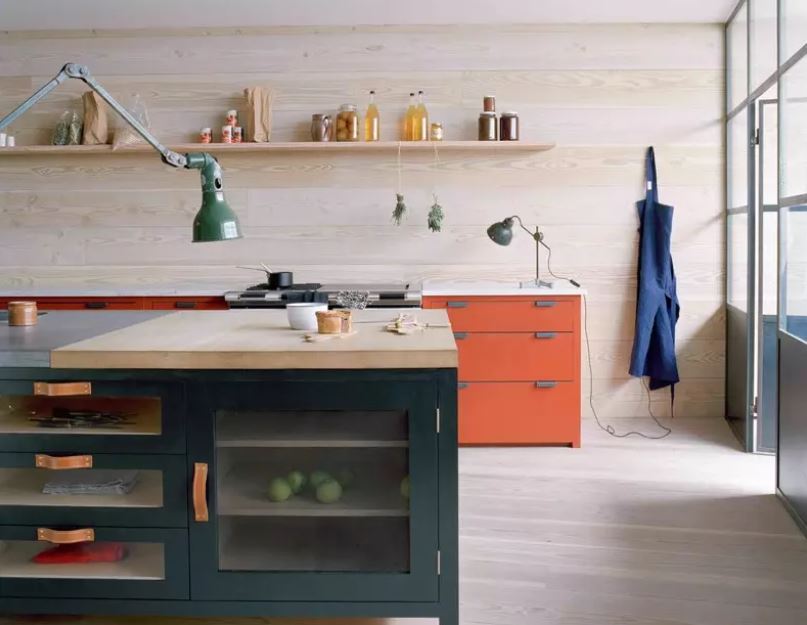 Libérez complètement le mur, les «îlots» des armoires murales, la solution élargira les possibilités de conception, certains styles de cuisines, réalisées avec la présence d'armoires murales.