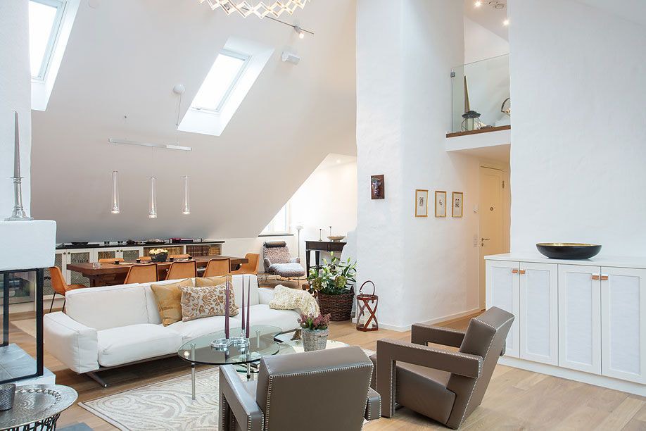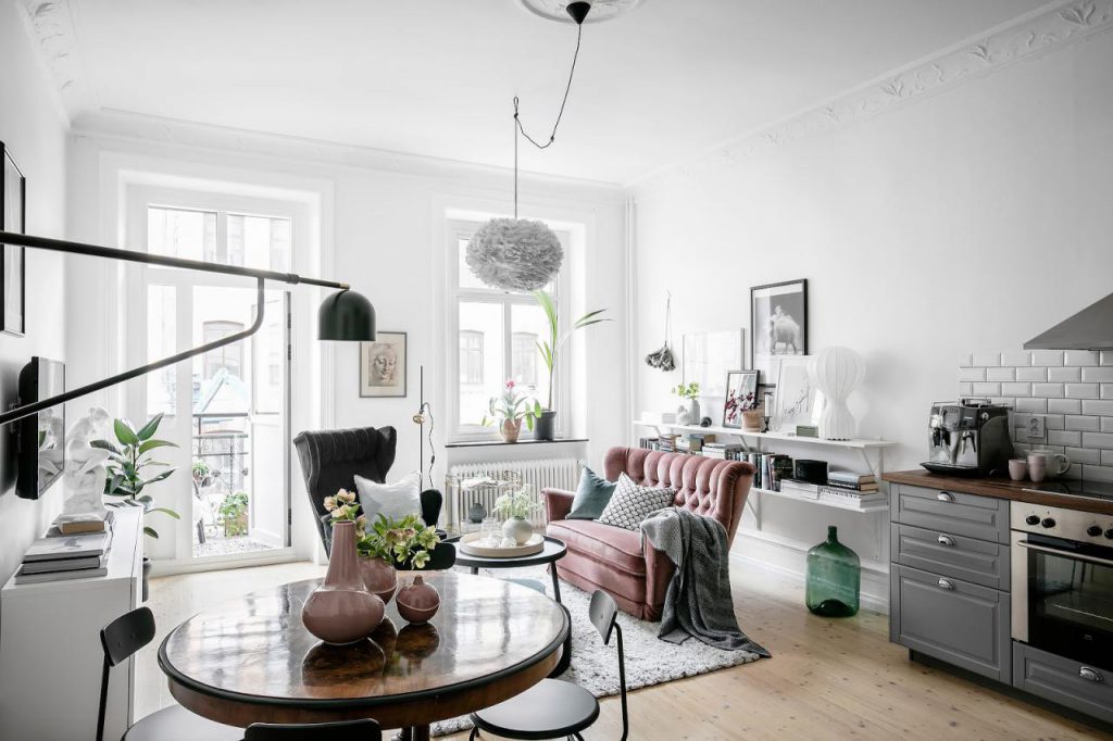 Lorsque deux pièces sont combinées en une seule, un espace lumineux et rempli d'air est obtenu, pour lequel tout style et solution coloristique conviennent.