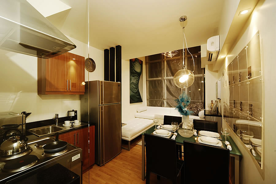 Il y a une zone de cuisson, un coin doux pour la détente et un groupe de repas, ce qui offre de grandes possibilités de décoration.