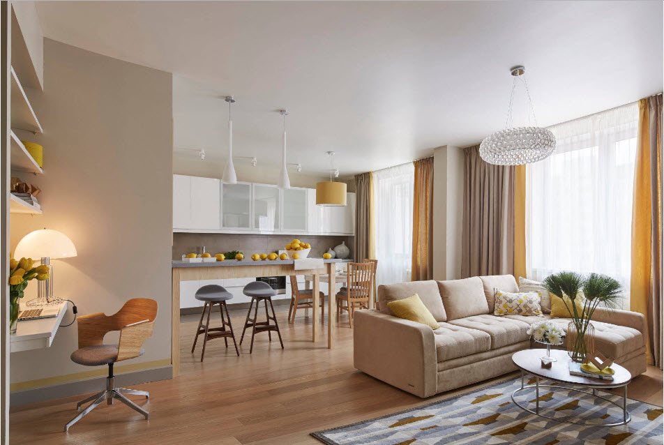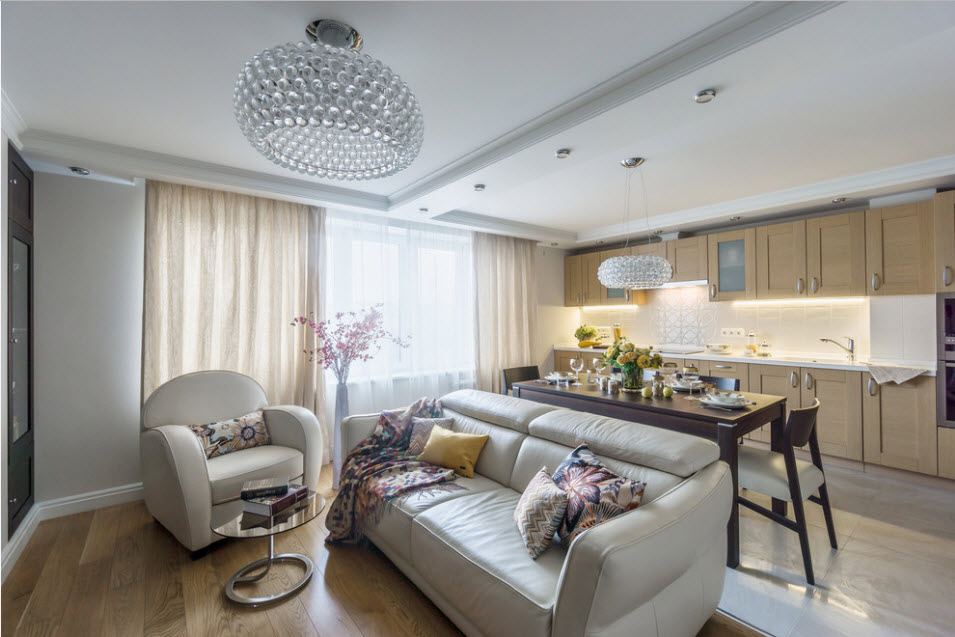 Le design du salon combiné avec la cuisine prend une grande variabilité.