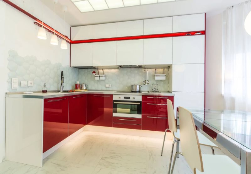 Les surfaces brillantes et les façades des meubles rendront la cuisine aussi spacieuse et ensoleillée que possible.