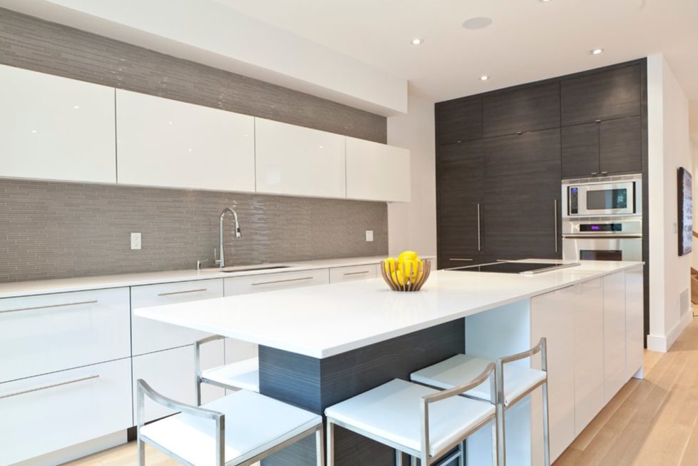L'intérieur d'une cuisine moderne combine souvent classique et minimalisme