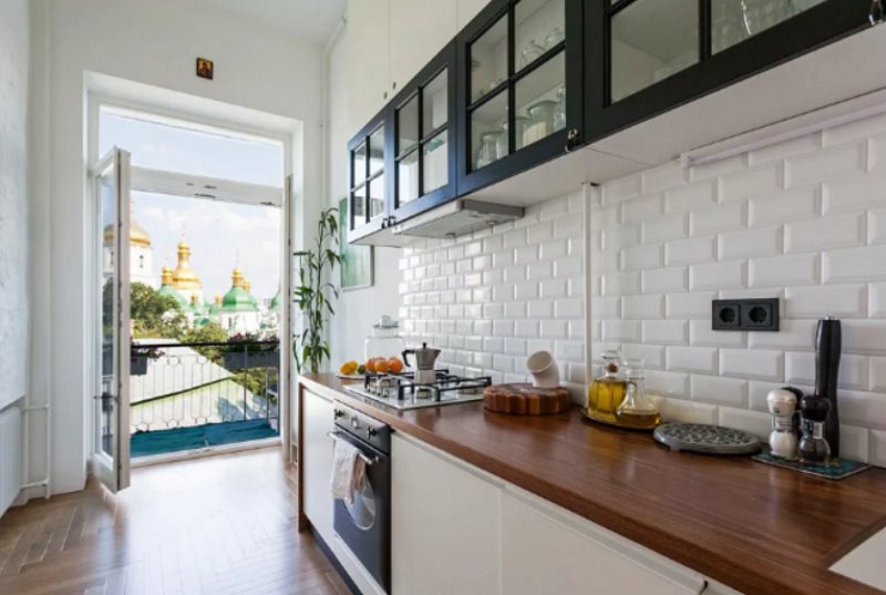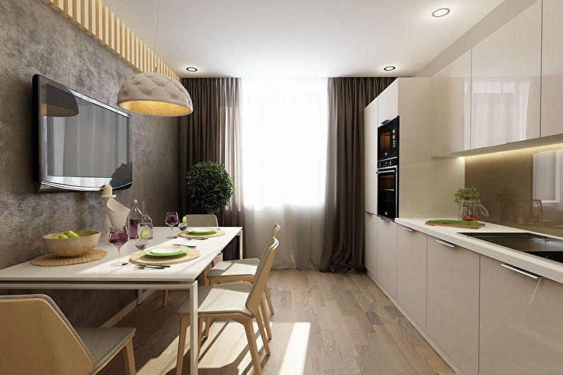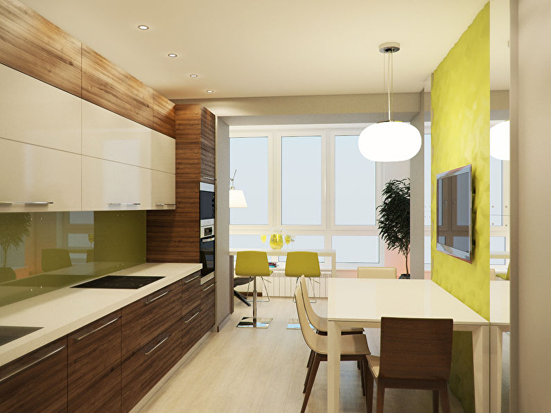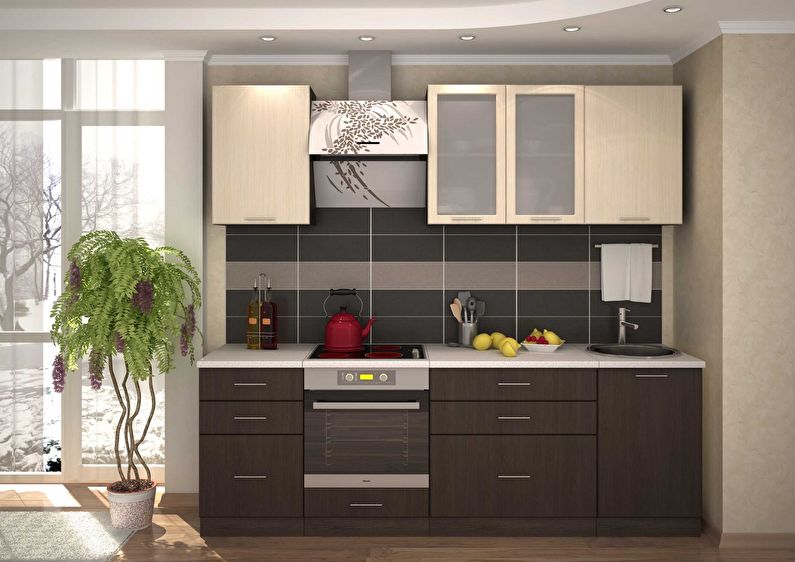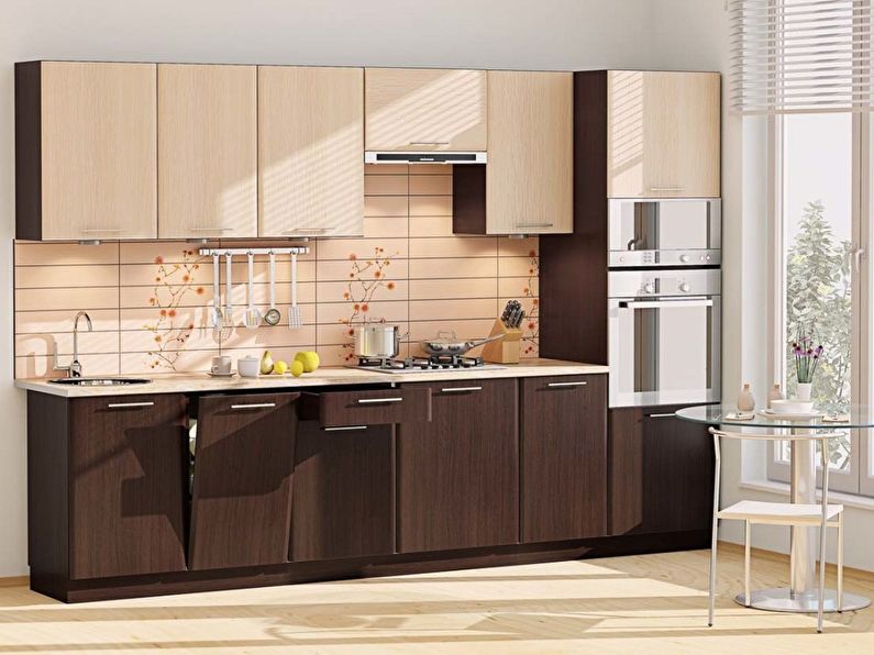 Avec une disposition linéaire, la cuisine est située le long d'un mur, et en face de la salle à manger