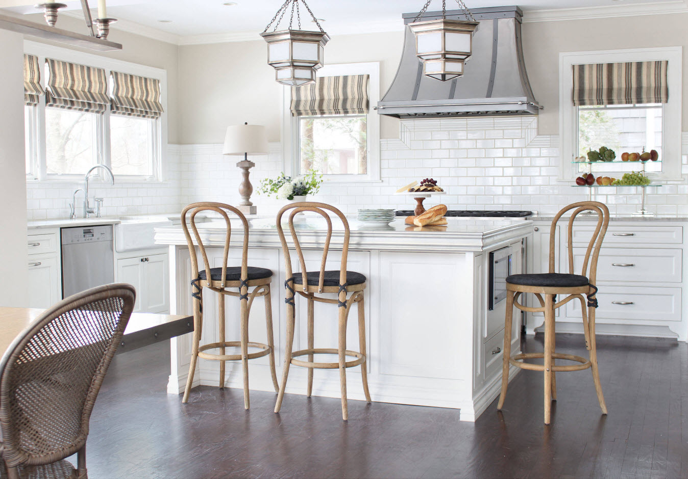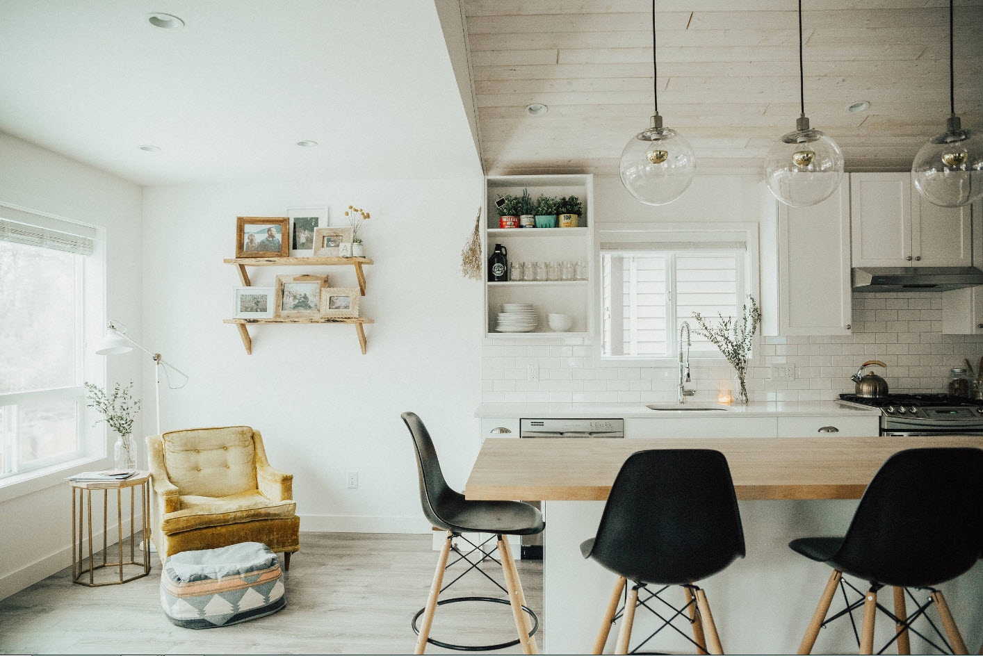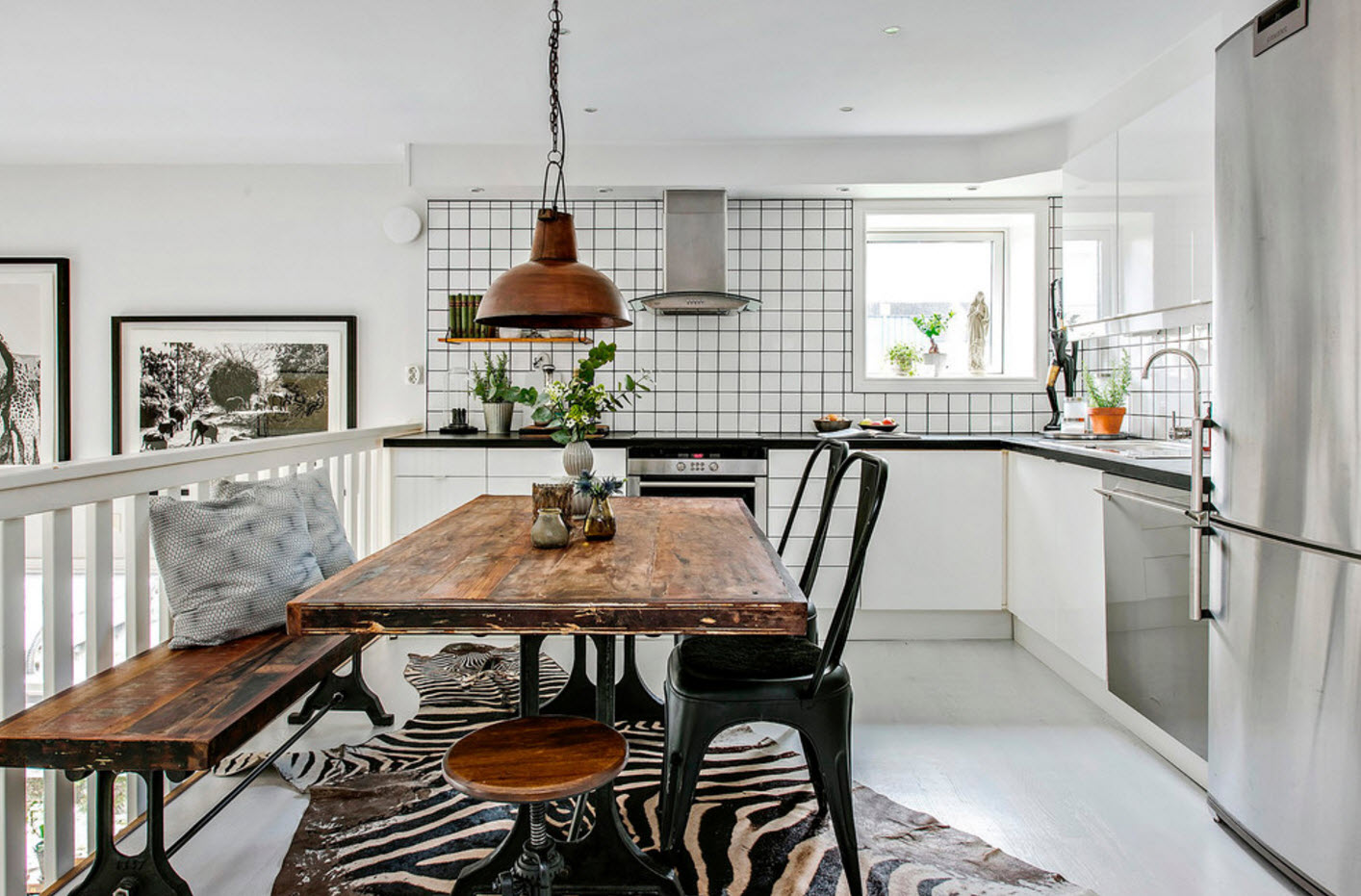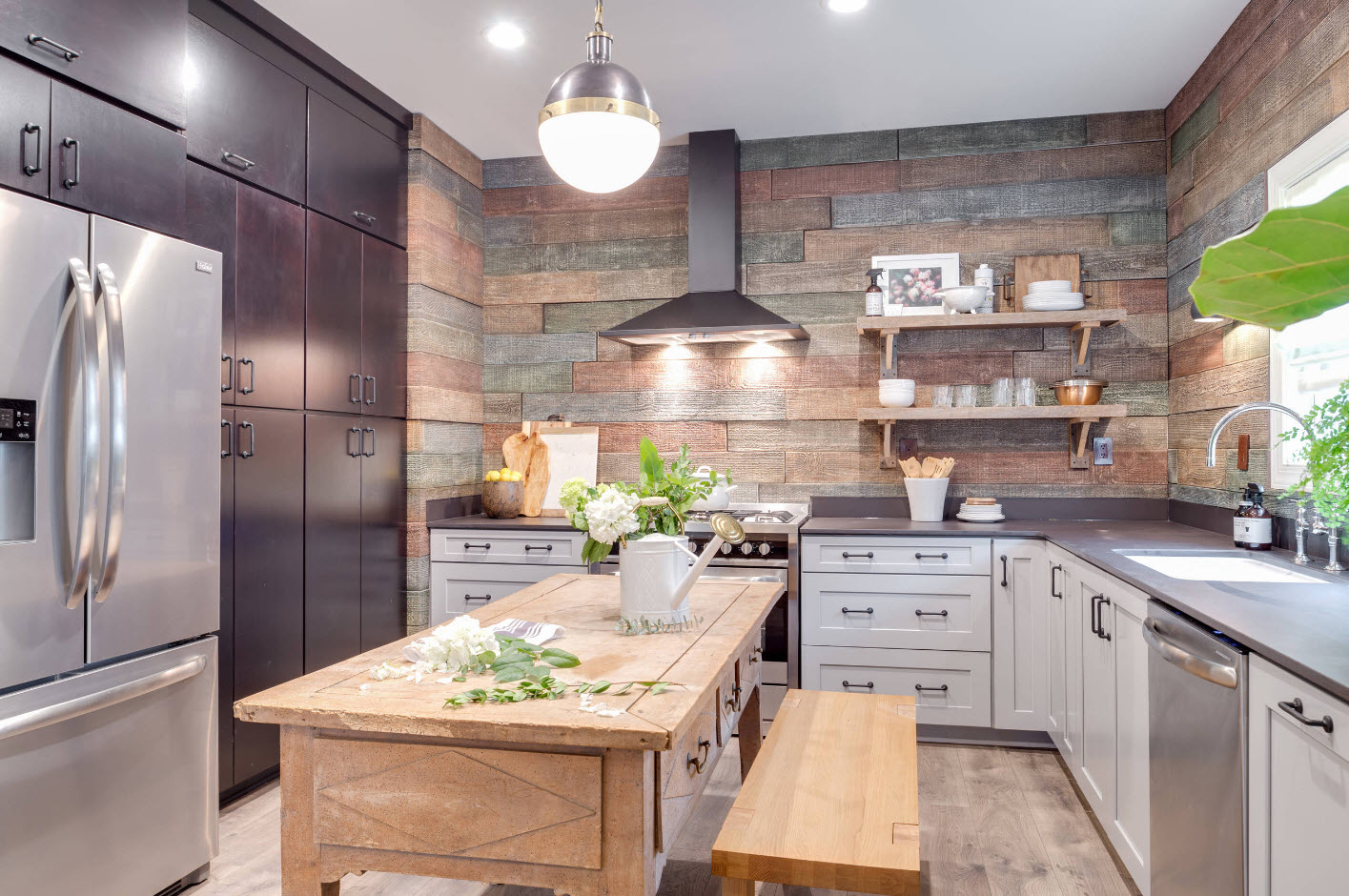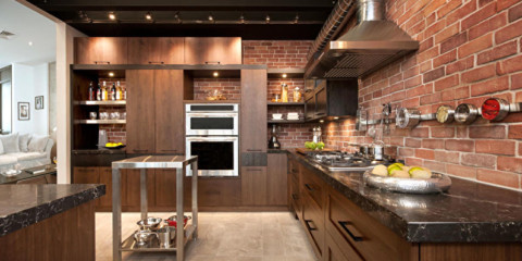 Les décorations peuvent inclure des plantes vivantes, des étagères ouvertes, une hotte aspirante ou un plafond rétro