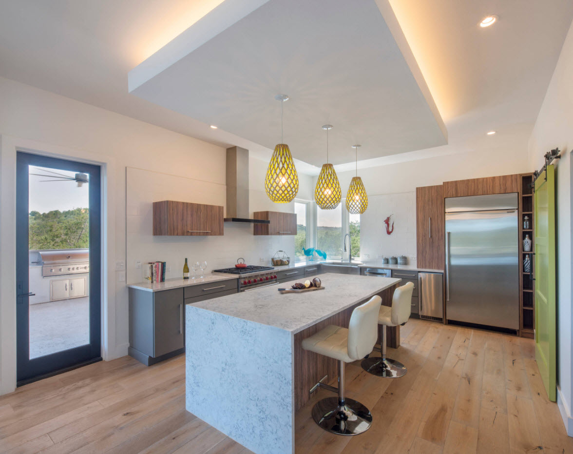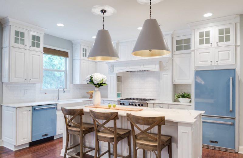 L'utilisation de luminaires originaux inhabituels est une technique de conception populaire pour créer un intérieur de cuisine unique