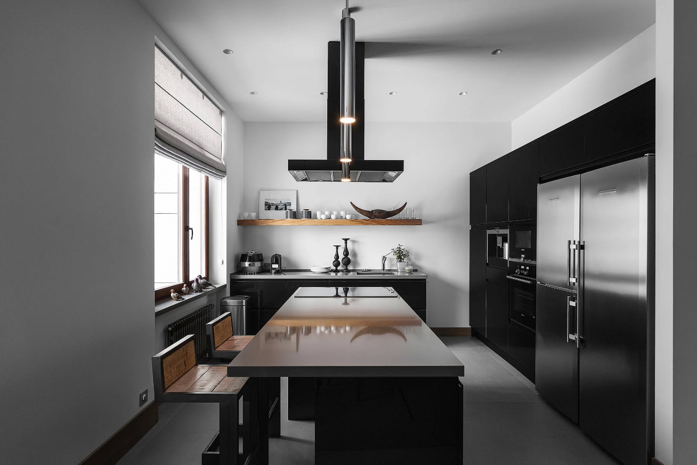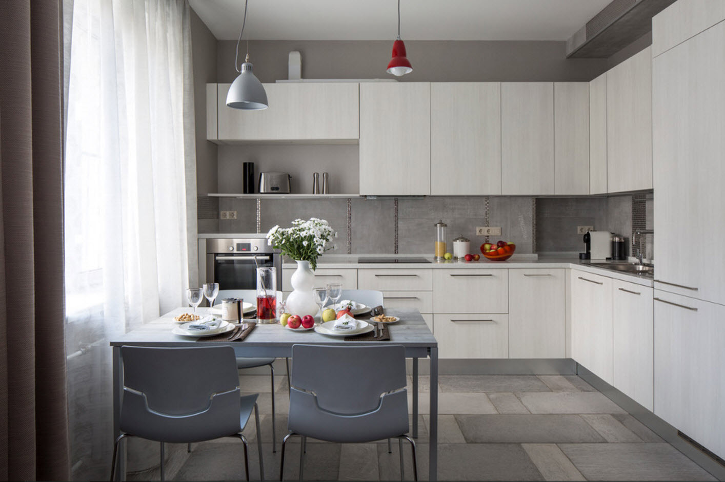 La cuisine est l'endroit le plus visité de l'appartement. Toute la famille se réunit ici le matin et le soir. Quelqu'un passe beaucoup de temps dans la cuisine à préparer la nourriture, tandis que d'autres aiment s'asseoir et parler les longues soirées d'hiver autour d'une tasse de chocolat chaud. La cuisine confortable est capable de donner un charme français à l'ensemble de l'appartement dans son ensemble. Il est conçu pour décorer les jours de la semaine et se remplir de force avant la prochaine journée de travail.