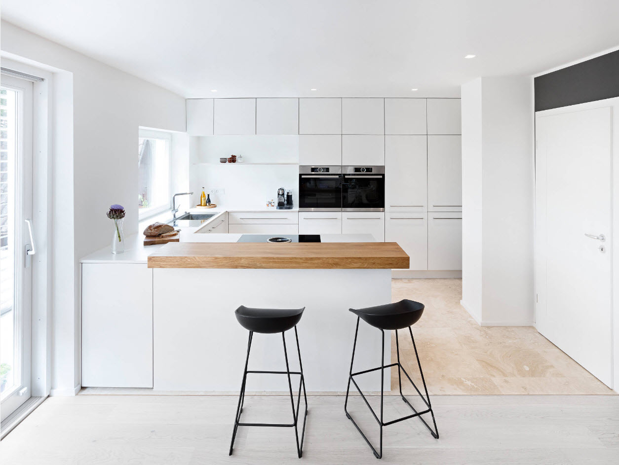 Le podium agit comme un zonage, séparant la cuisine de l'espace commun