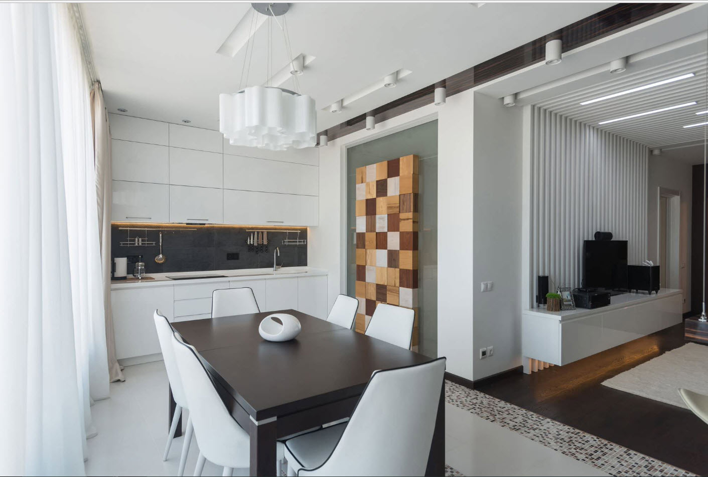 Néanmoins, la haute technologie est très belle dans les appartements modernes.Sa version plus avancée (bionique) a été décrite ci-dessus. Voyons maintenant la cuisine dans un style moderne classique.
