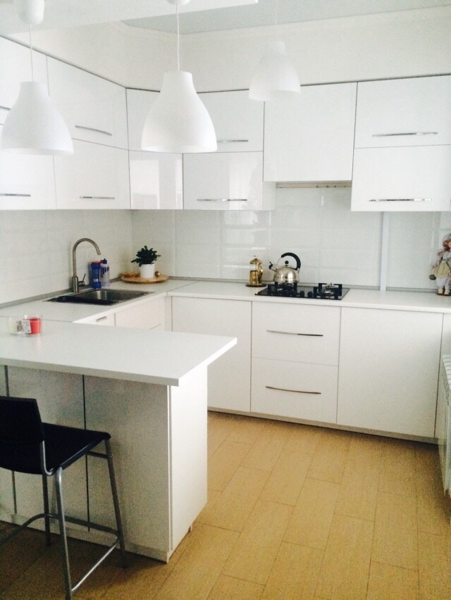 Un plancher léger combiné à des façades blanches augmentera encore la superficie d'une cuisine compacte