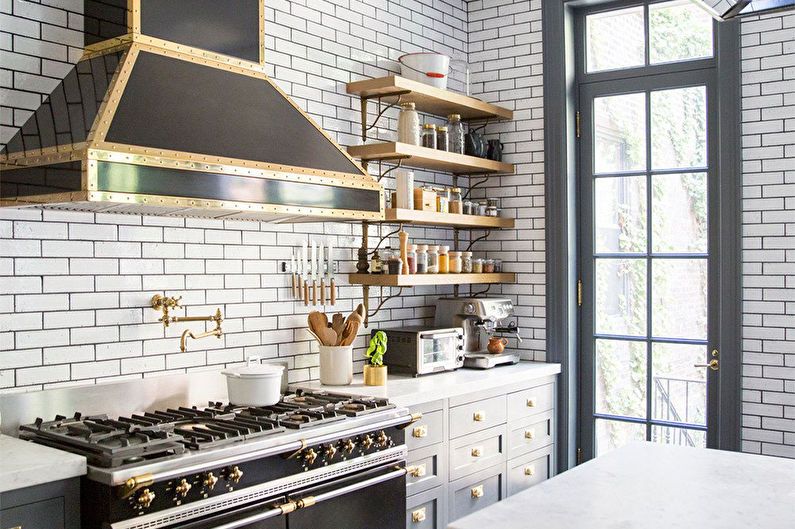 Les principaux domaines de décoration sont les murs, le sol et le plafond. Il convient également de mentionner le casque. Pour les comptoirs, il est préférable de choisir un matériau durable qui peut résister à des températures élevées et se prête bien au nettoyage.