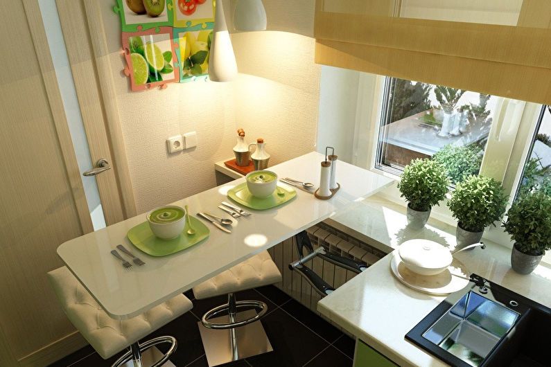 Comme vous pouvez le voir, la conception de la cuisine est de 6 mètres carrés. - pas si difficile. Et dans une si petite zone, vous pouvez facilement créer une atmosphère chaleureuse et un intérieur confortable. Résumons maintenant les principaux points et règles pour la conception d'une telle cuisine.