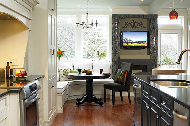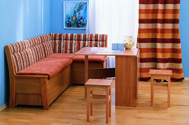 Dans la cuisine, un endroit pour dormir ne doit pas seulement être très confortable. L'harmonie de sa combinaison avec le style général de la pièce jouera un rôle énorme. La couleur du rembourrage doit être choisie en fonction du style de la pièce.