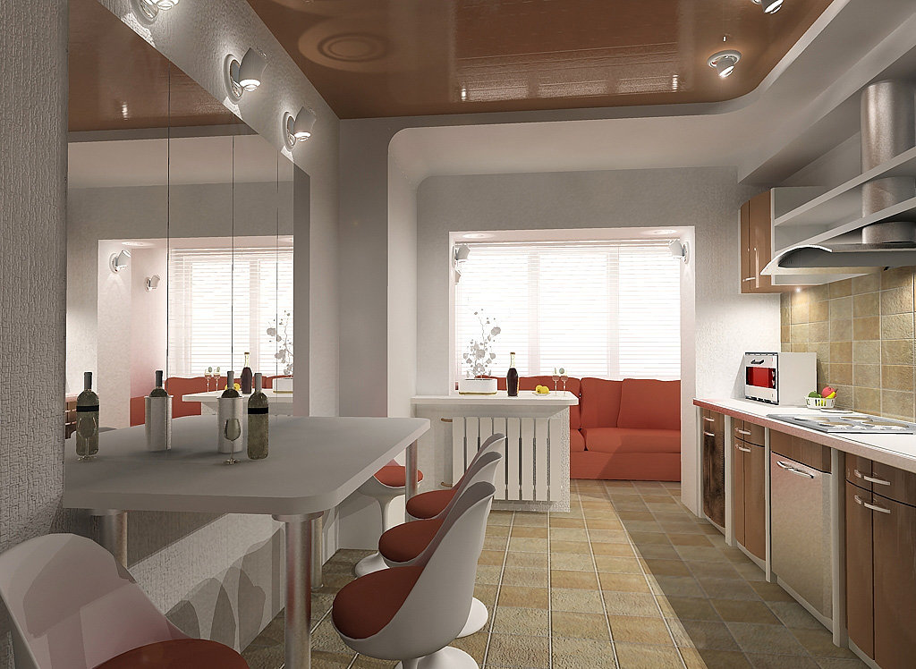 Des conseils! Ayant un balcon, il faut absolument en profiter pour agrandir la surface. Il est préférable de démolir une cloison pour isoler les murs en plus. Sur le territoire de la loggia, il sera possible d'installer un casque, libérant ainsi de l'espace.