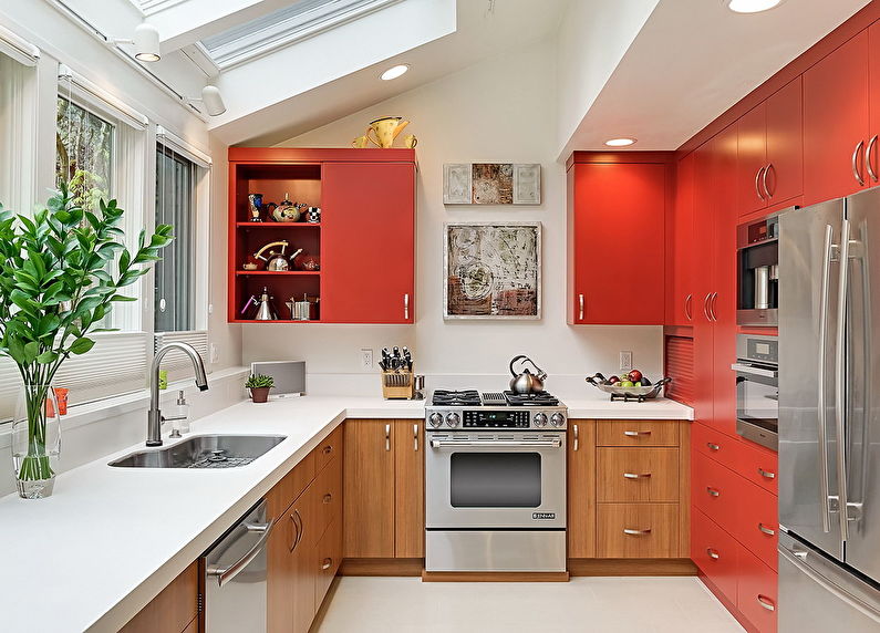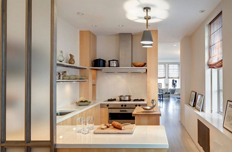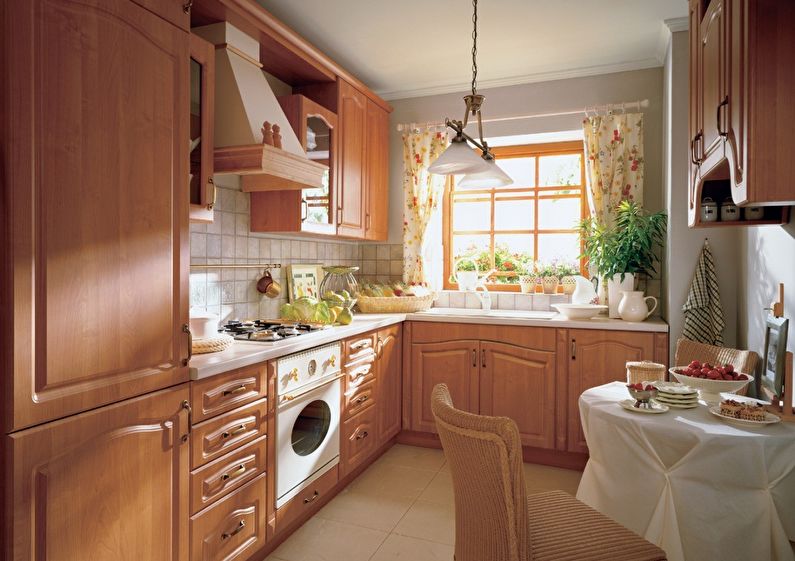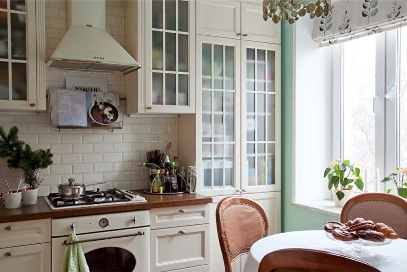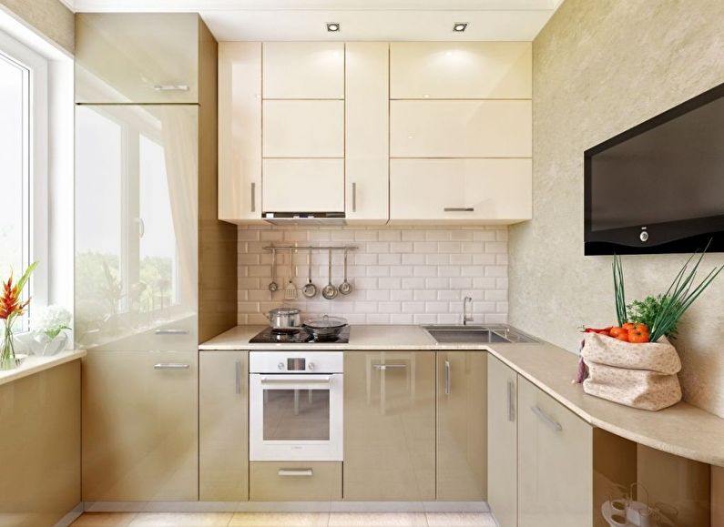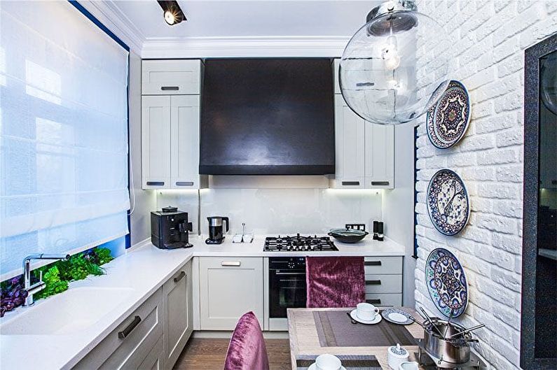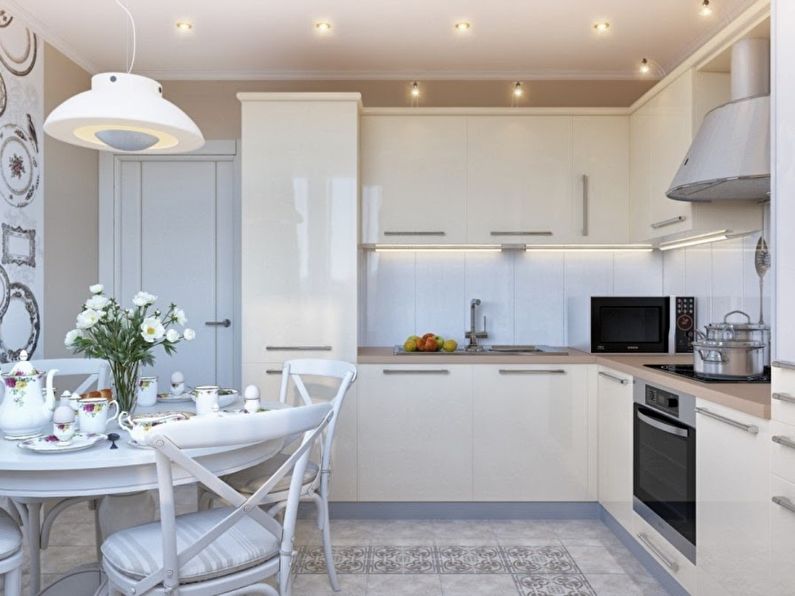 La conception de la cuisine de 9 m² est compliquée par le fait que la taille de la pièce est petite. Il sera nécessaire de minimiser l'utilisation d'appareils inutiles, de bibelots décoratifs et d'autres éléments qui n'apportent pas de remplissage fonctionnel à l'espace.