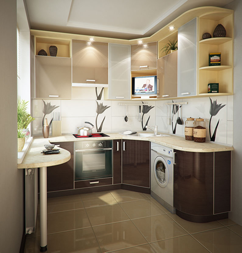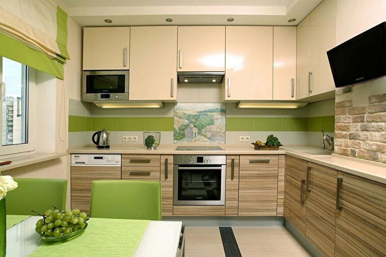 Conception de cuisine 9 m² m - presque le point le plus important. C'est la seule façon de voir l'option la plus appropriée pour la réparation et l'agencement des meubles.