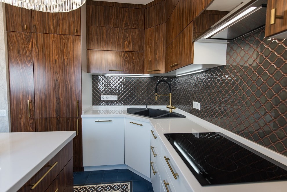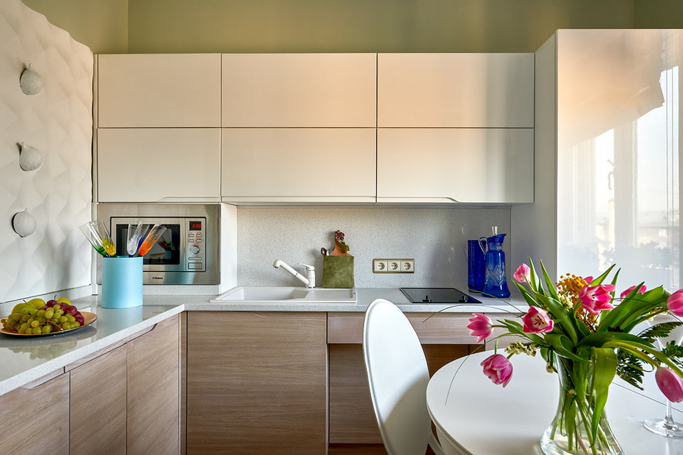- La possibilité de créer des plans de travail à partir du même matériau, ce qui rend l'apparence de la pièce complète et réfléchie.