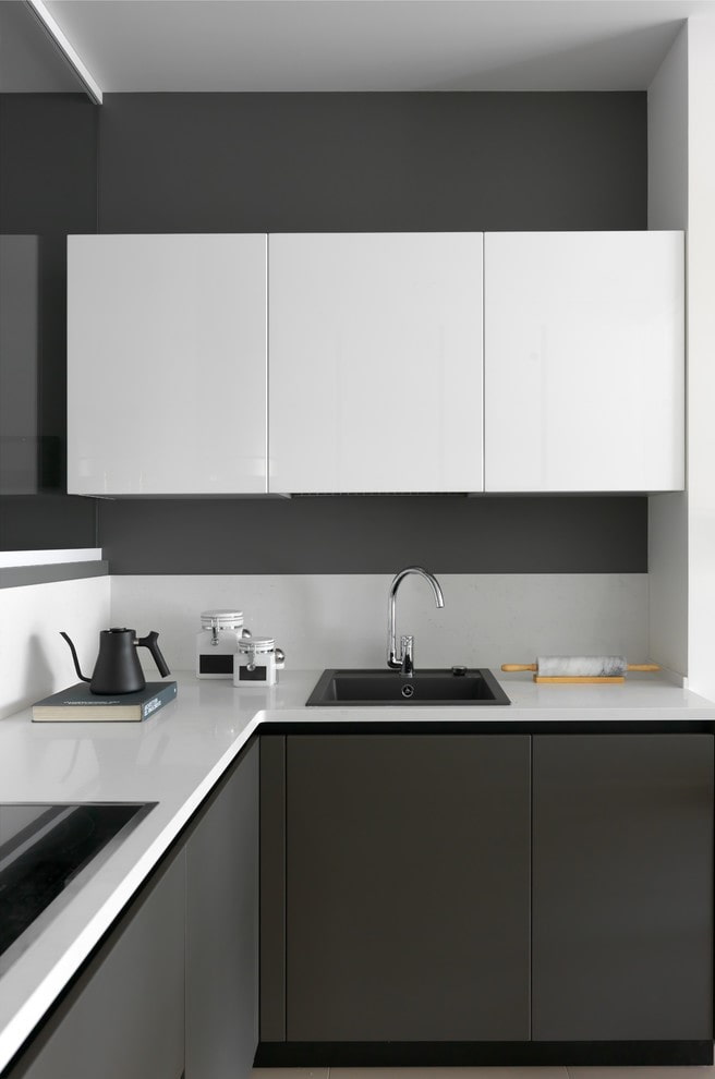 Beaucoup de gens choisissent spécifiquement un évier de sorte qu'il diffère en couleur du plan de travail, jouant ainsi avec le contraste.