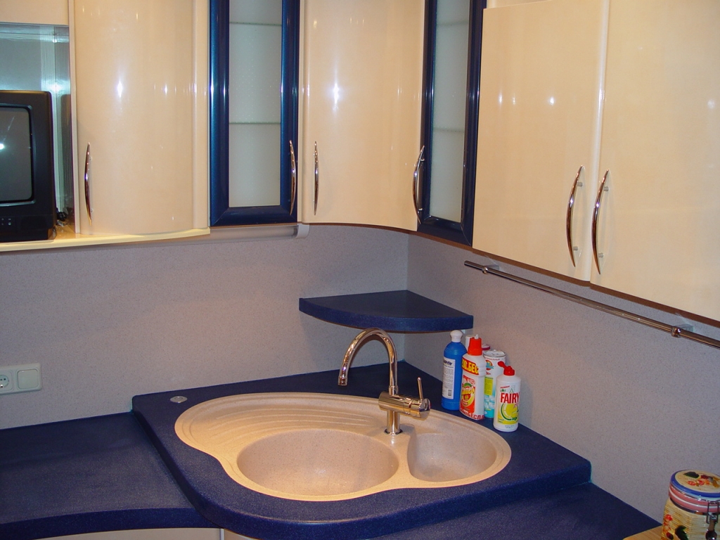 - éviers encastrés dans la surface de travail (l'option la plus chère);