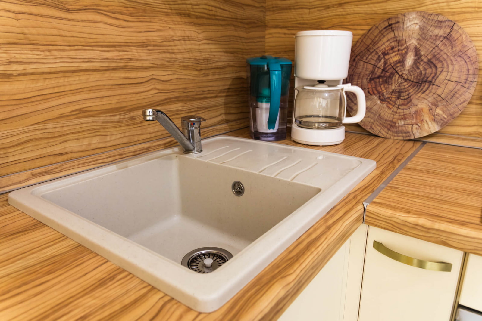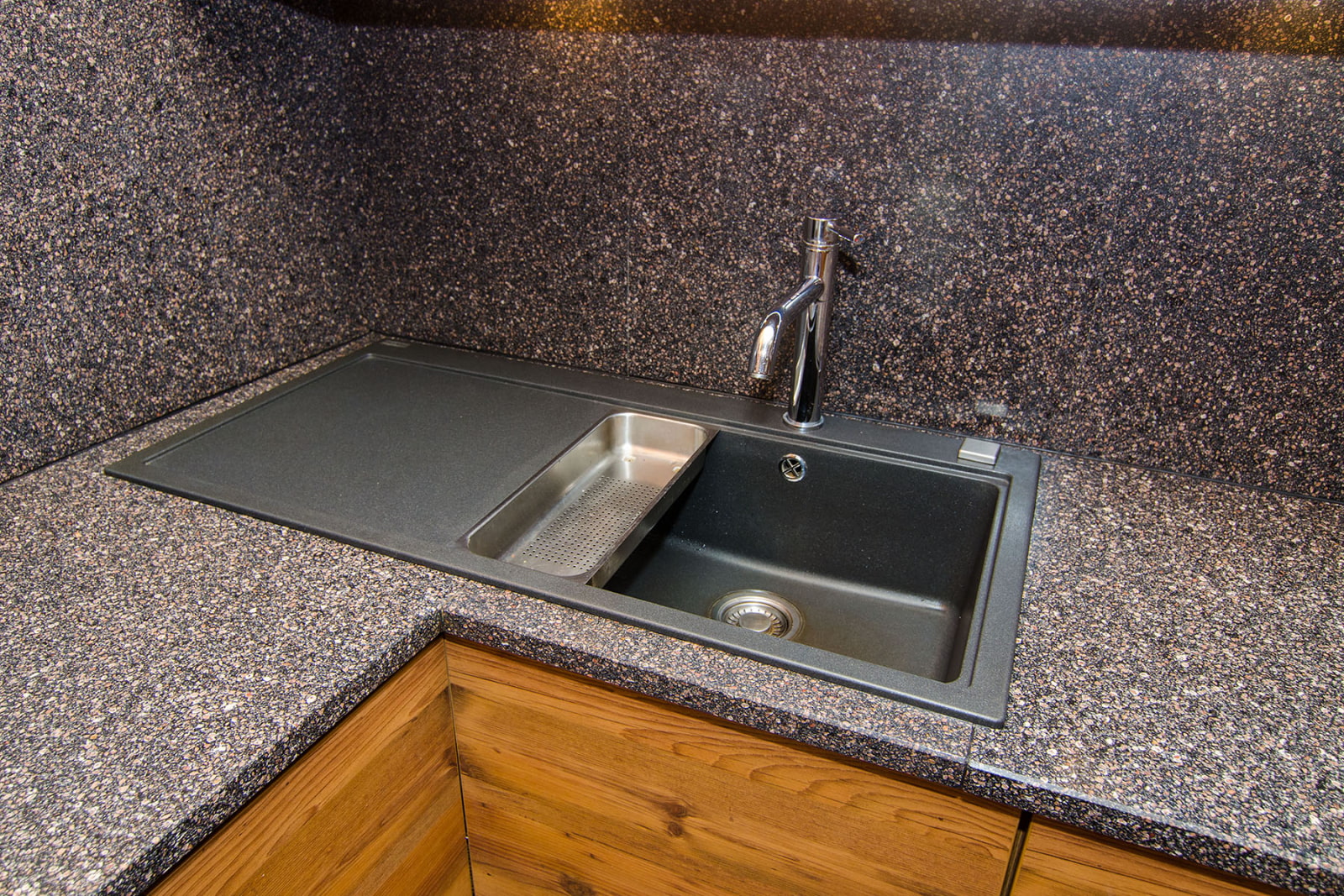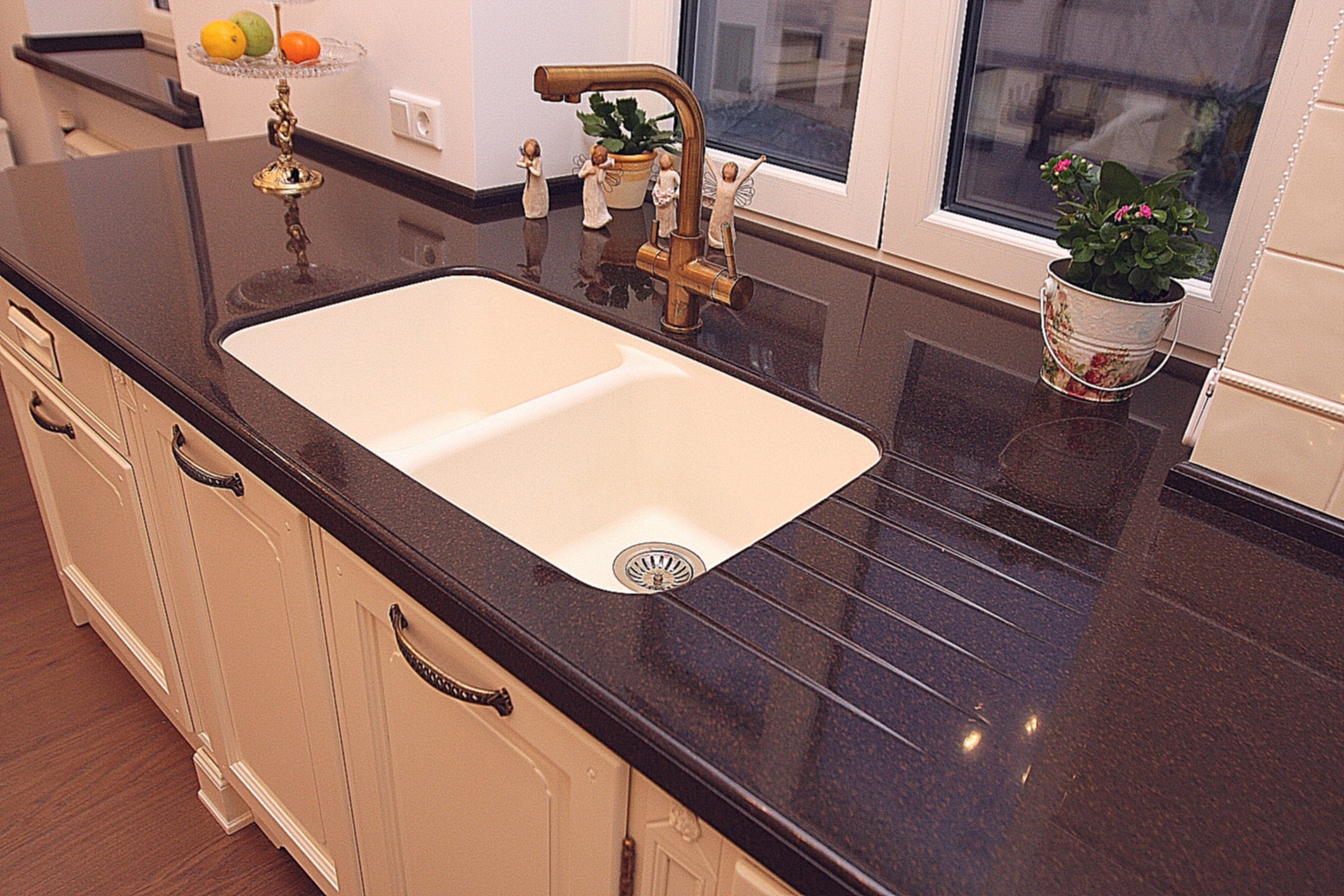 - Conception d'une cuisine avec un évier en pierre artificielle