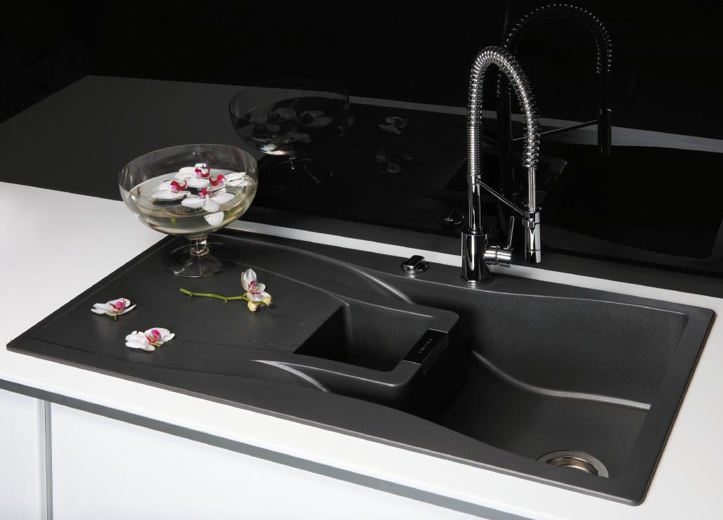 En comparant les matériaux les plus populaires à partir desquels les éviers de cuisine sont fabriqués - acier inoxydable, céramique, pierre, les concepteurs préfèrent unanimement un évier en pierre pour la cuisine.