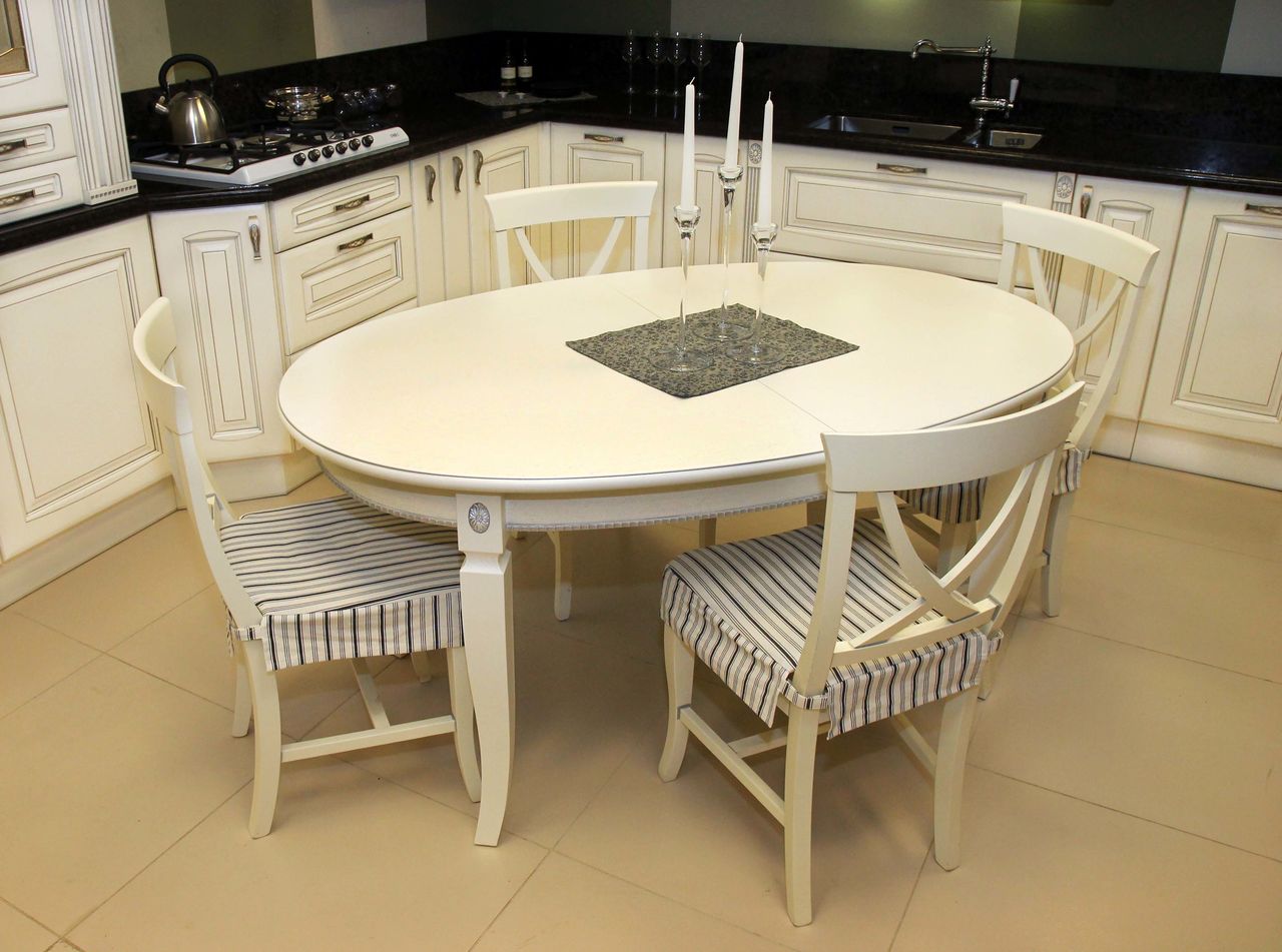 Les tables ovales sont principalement présentées sous la forme de modèles de meubles coulissants, ce qui est une propriété très pratique. Étant donné que les jours ordinaires, vous avez une petite table sur laquelle toute la famille est placée, et les jours fériés, lorsque des amis et des parents viennent chez vous, elle peut facilement être transformée en une table pouvant accueillir un plus grand nombre de personnes.