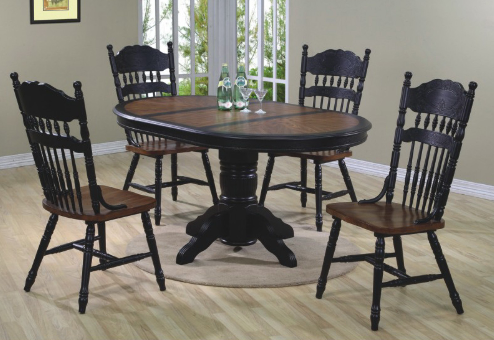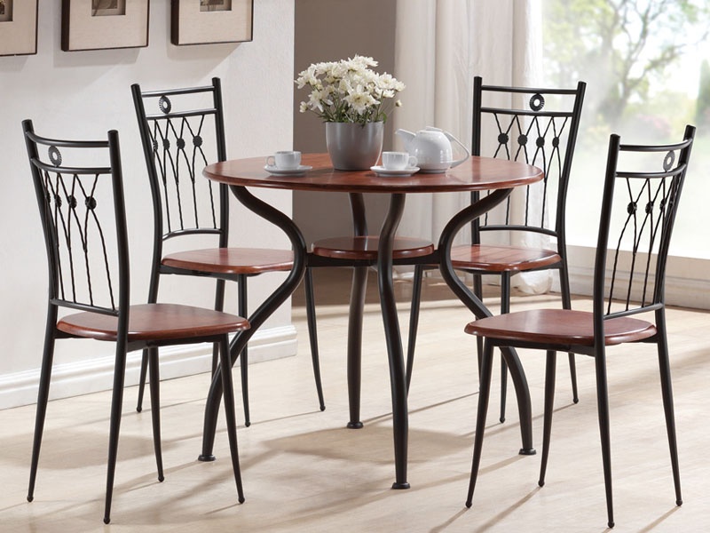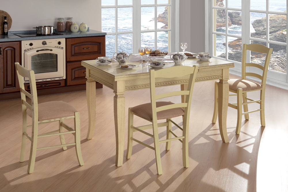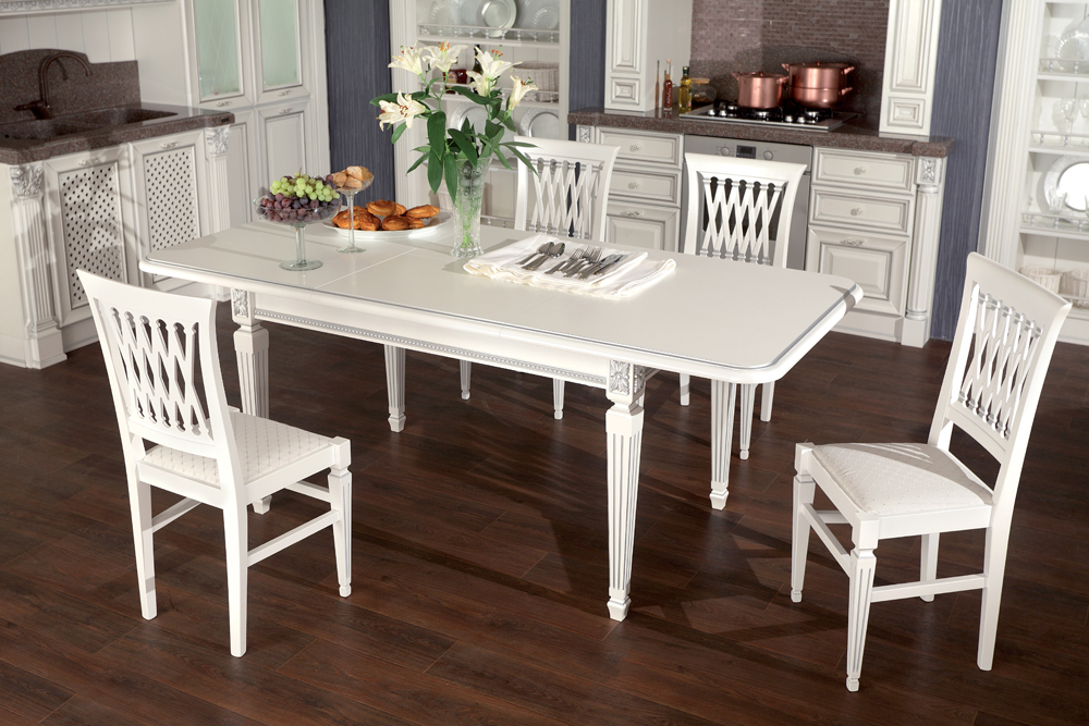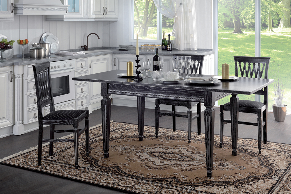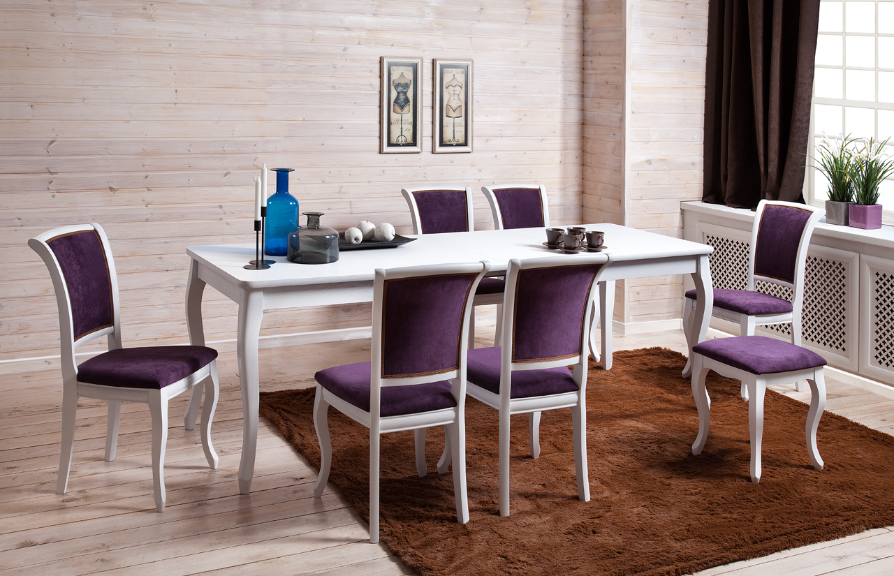 Traditionnellement, le groupe de salle à manger est combiné avec des chaises faites du même matériau que la table.