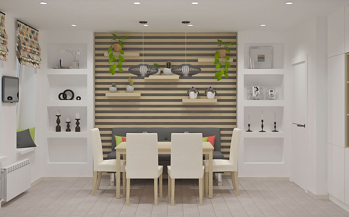Pour certaines personnes, le zonage est très important. Pour séparer la zone de la cuisine où la cuisson directe et les autres tâches ménagères ont lieu du réfectoire, il vous suffit de construire une niche normale et d'y placer une table. Cela ne nécessite pas beaucoup de dépenses, mais vous pouvez vous concentrer pleinement sur la nourriture, profiter de son goût et passer un bon moment en famille et entre amis.