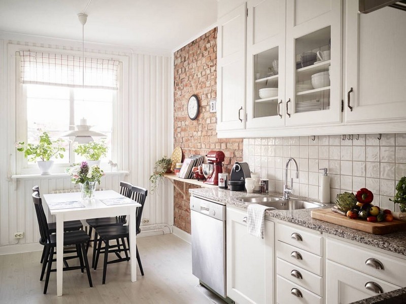 Mais que faire si la kitchenette est complètement petite? C'est simple, vous pouvez également disposer la table, mais, bien sûr, plus petite au centre.
