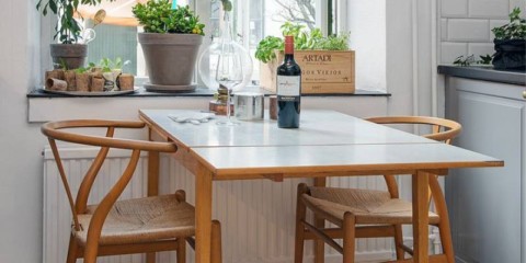 Les rideaux unilatéraux ont fière allure dans les cuisines avec accès à un balcon. Contrairement aux rideaux ordinaires, ils n'interfèrent absolument pas avec le passage.