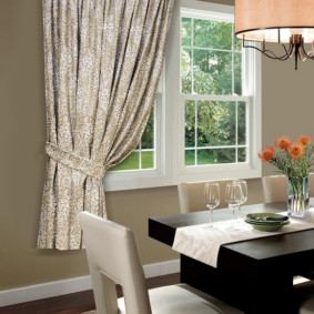Les rideaux unilatéraux seront la solution idéale pour la cuisine, où le mobilier se trouve près de l'ouverture de la fenêtre