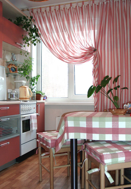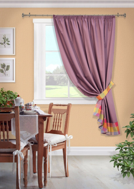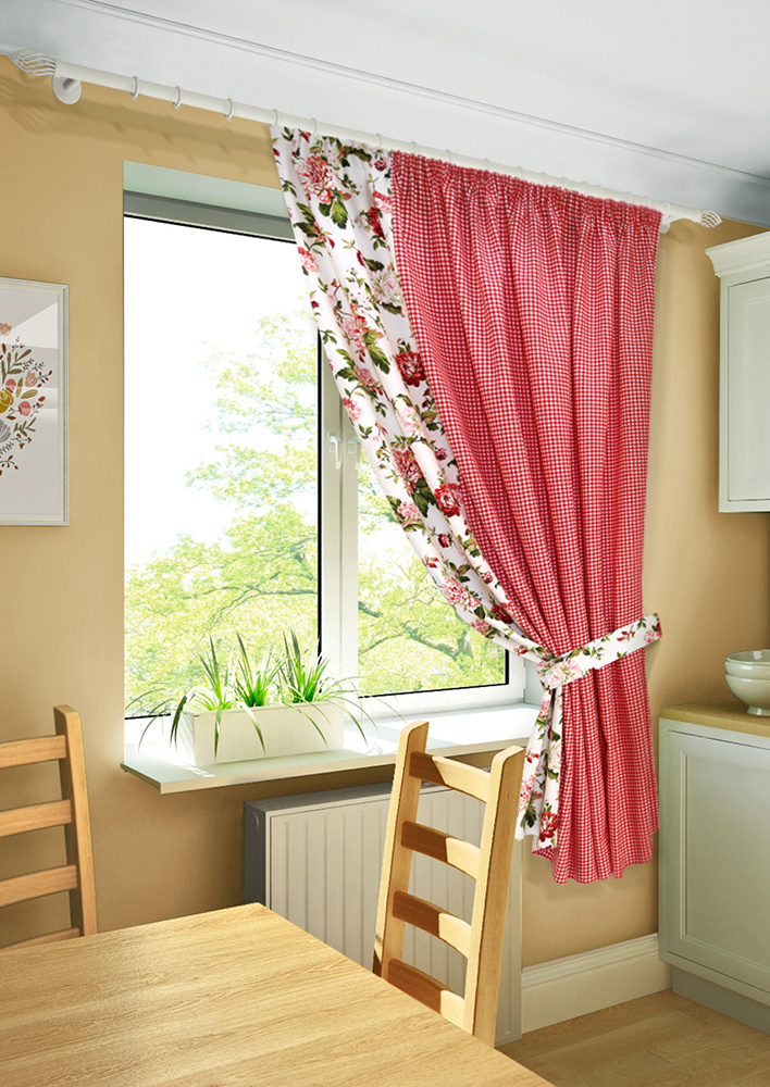 Parfait pour les rideaux de la cuisine avec un motif floral. Une impression rayée et en cage peut et peut sembler plus simple, mais elle sera également belle.