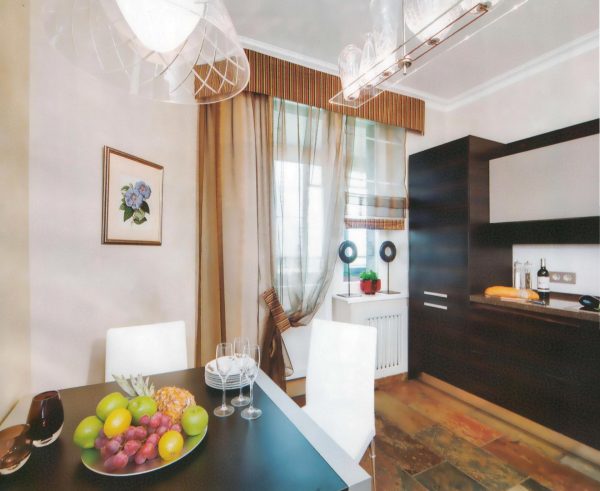 Pour les classiques et baroques, les rideaux en tissus luxueux avec des rideaux volumineux doivent être préférés. Avouons-le, les cuisines sont loin d'être l'option la plus appropriée. Tout d'abord, en raison des spécificités de la pièce. Deuxièmement, ces rideaux mangeront visuellement l'espace dans la cuisine déjà petite. Exactement ceux-ci dans la plupart des appartements de notre pays et dans l'espace post-soviétique.