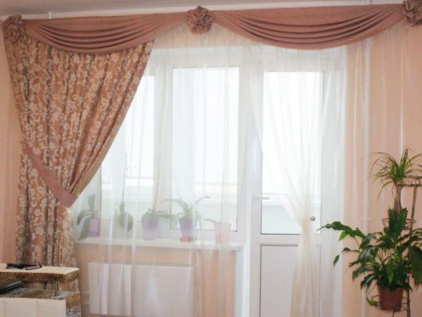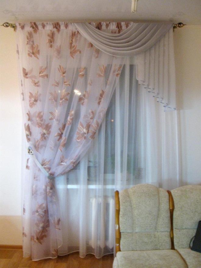 - Combiné. Les rideaux ne sont pas d'un seul, mais de plusieurs tissus de texture, de texture et de couleur différentes. Il y a beaucoup d'options. Un designer expérimenté avec de tels rideaux peut faire des merveilles.
