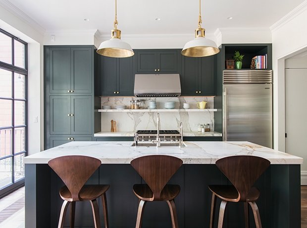 Lorsque vous travaillez avec des couleurs sombres, n'oubliez pas le bon éclairage et l'ajout de reflets brillants ou lumineux. Après tout, sinon vous risquez de transformer la cuisine en un entrepôt sombre et inconfortable. Il en va de même pour les couleurs blanches et claires - combinez, sinon obtenez un laboratoire.