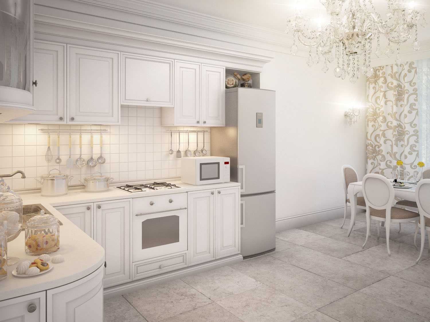 Une caractéristique des classiques est une combinaison harmonieuse de meubles lourds et de certains détails (rideaux, éléments décoratifs) avec des couleurs claires. Les tons les plus courants pour ce style sont le beige, l'ivoire, le laiteux et toutes les nuances de brun. Un exemple frappant est la cuisine italienne.
