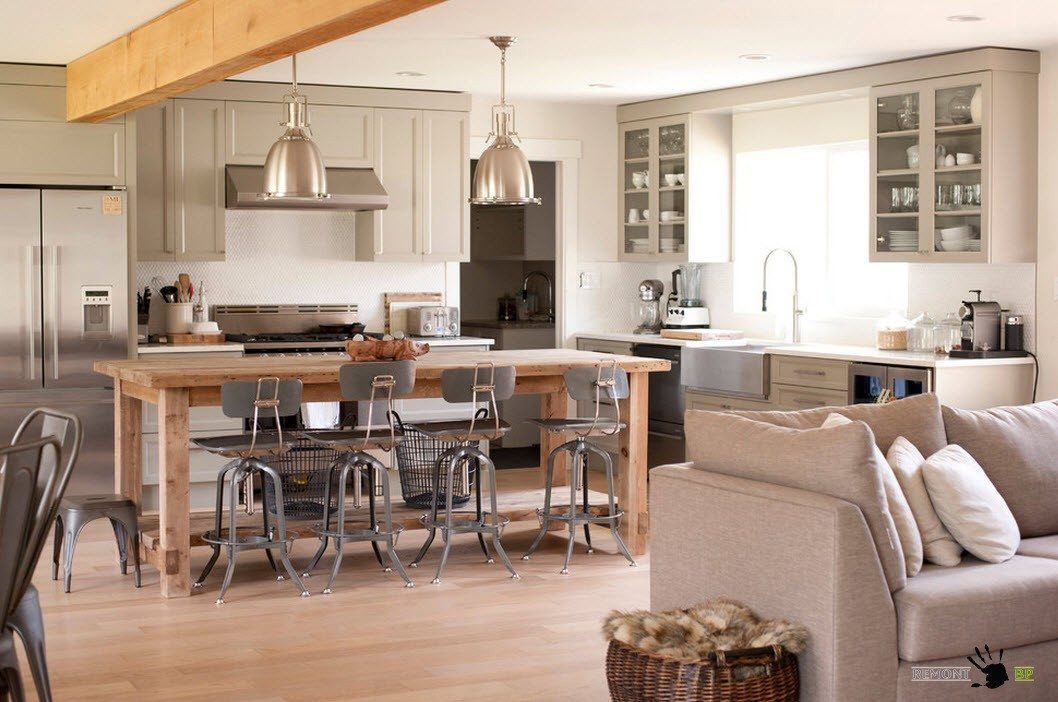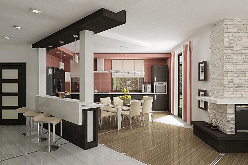 | Zonage | Table à manger - C'est le "point culminant" du programme, l'endroit tout entier pour le déjeuner. Il est installé séparément du travail les zones sur la cuisine et aires de loisirs salon. |