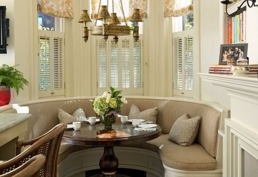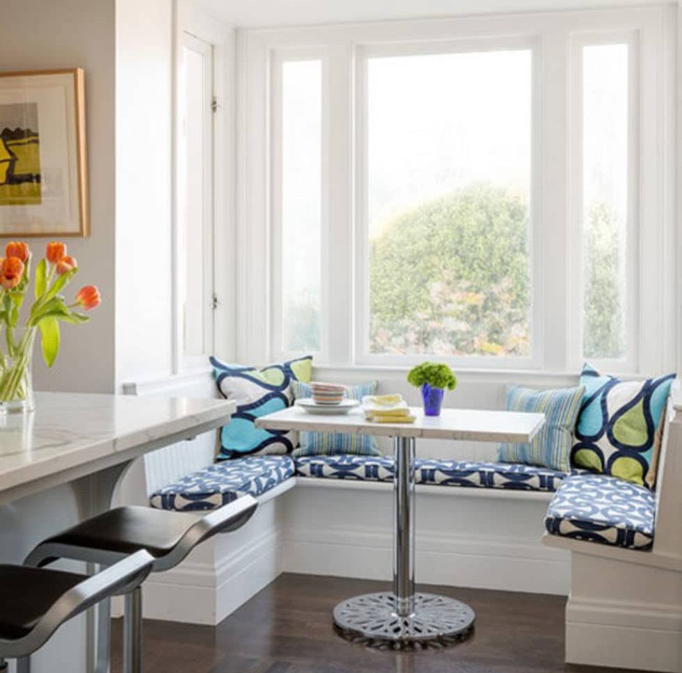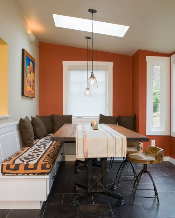 - Des coussins sur des chaises ou un canapé aideront à ajouter du confort à la salle à manger.