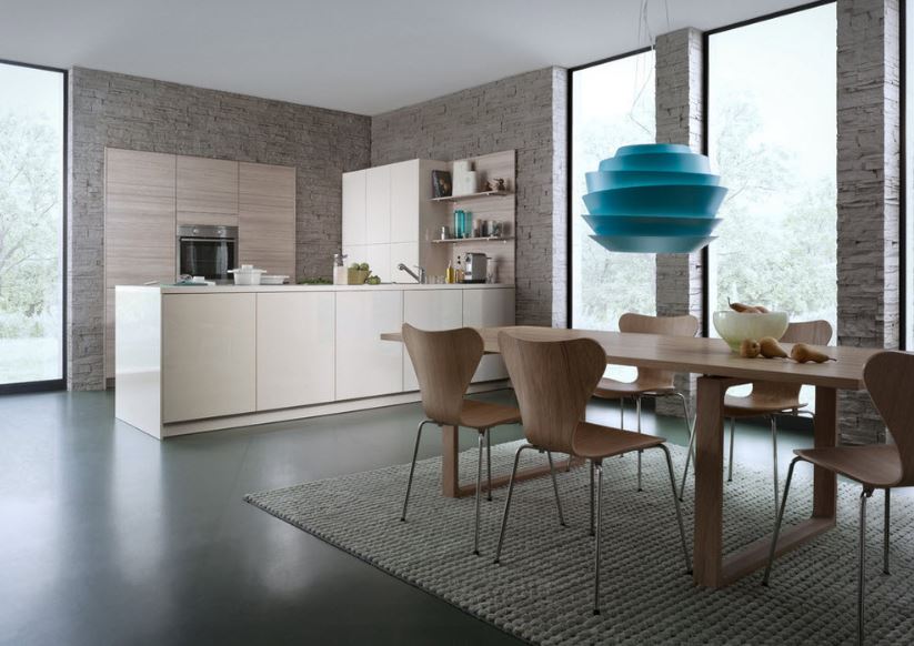 Des conseils! Il est nécessaire de faire attention au matériau de revêtement et, lors de la pose, de tenir compte du fait que sur le lieu de travail, le sol doit supporter de lourdes charges. Et la salle à manger peut être décorée avec n'importe quel revêtement, car cette zone n'est pas soumise à de lourdes charges et à des dommages mécaniques.