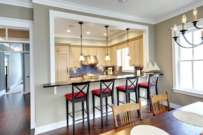 En tant que séparateur de la cuisine et de la salle à manger, un comptoir de bar est souvent utilisé.