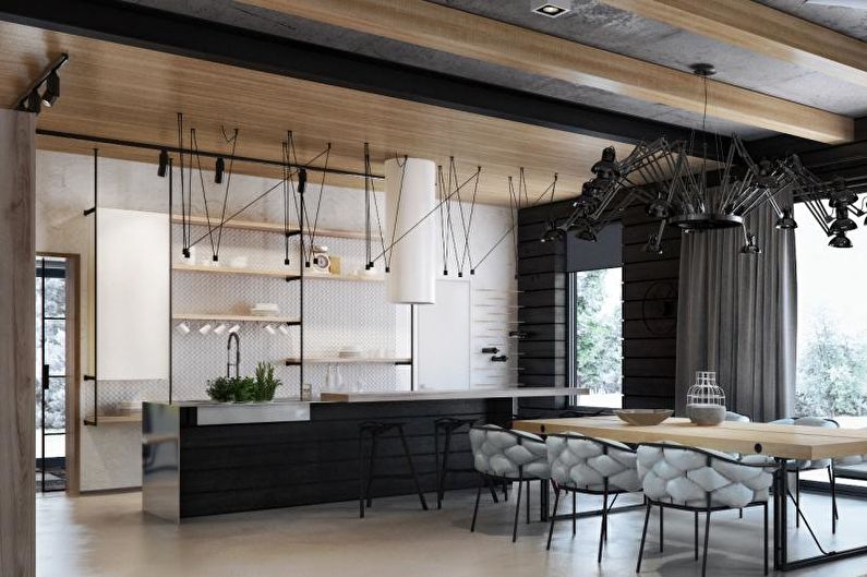 Le plus souvent, la division de la cuisine en zones aide à remplir le plafond. Différentes méthodes de zonage peuvent être utilisées:
