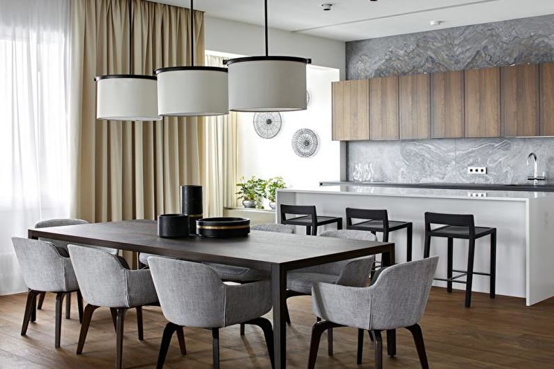 La cuisine est un endroit important dans un appartement ou une maison. Dans cette salle, nous préparons le petit déjeuner, le déjeuner et le dîner, dégustons des plats cuisinés et invitons les invités. Le design de la salle à manger doit être impeccable pour que votre séjour se termine avec délice. Par conséquent, il est nécessaire de réfléchir à tous les détails de conception et de choisir les bonnes options et idées pour la mise en œuvre avant de commencer les réparations.