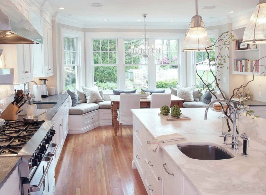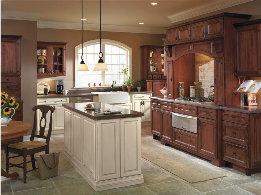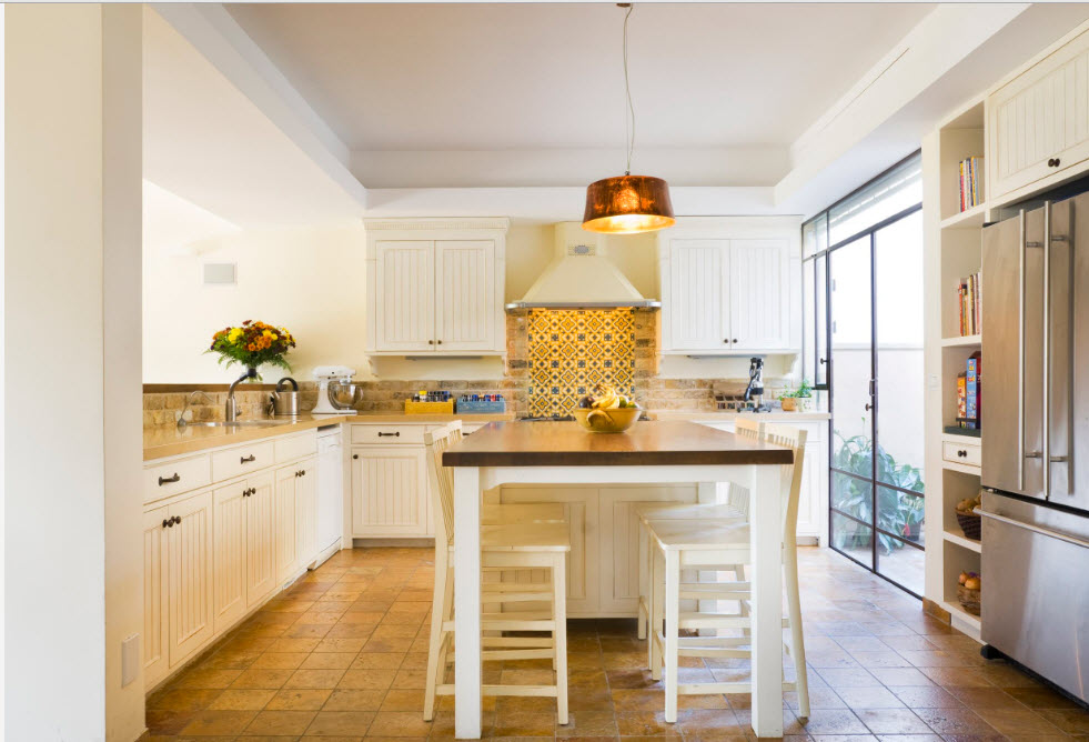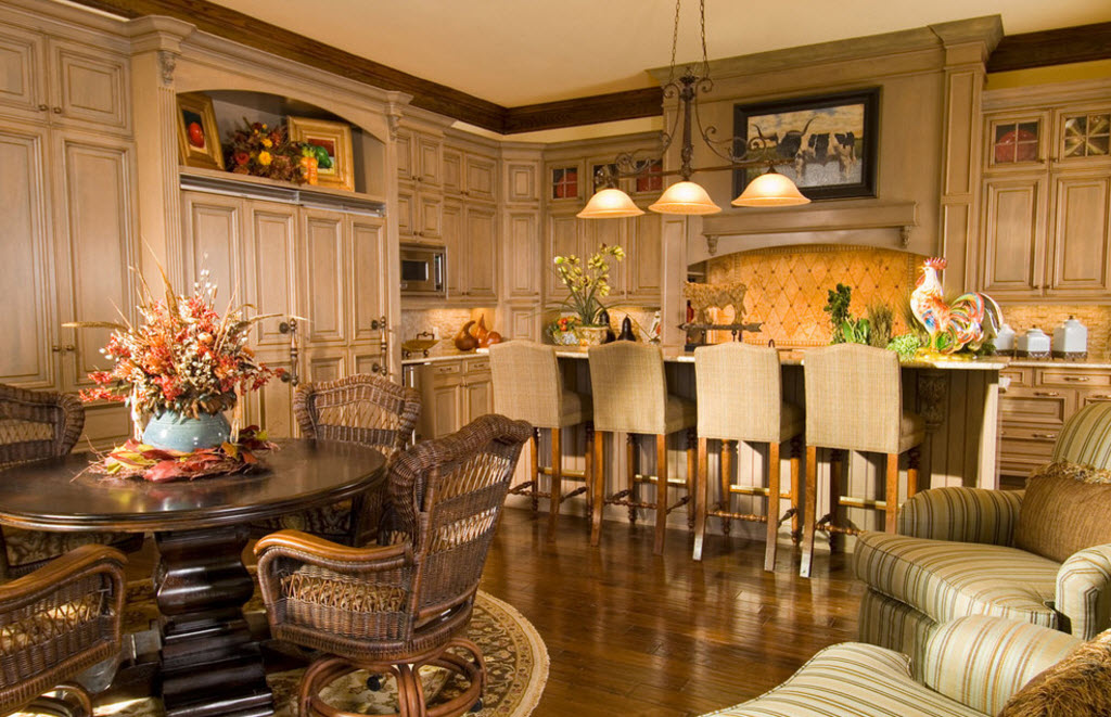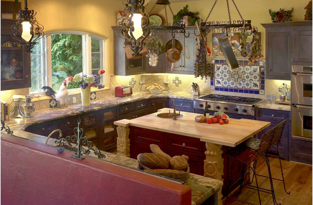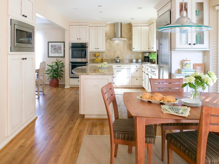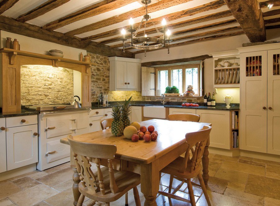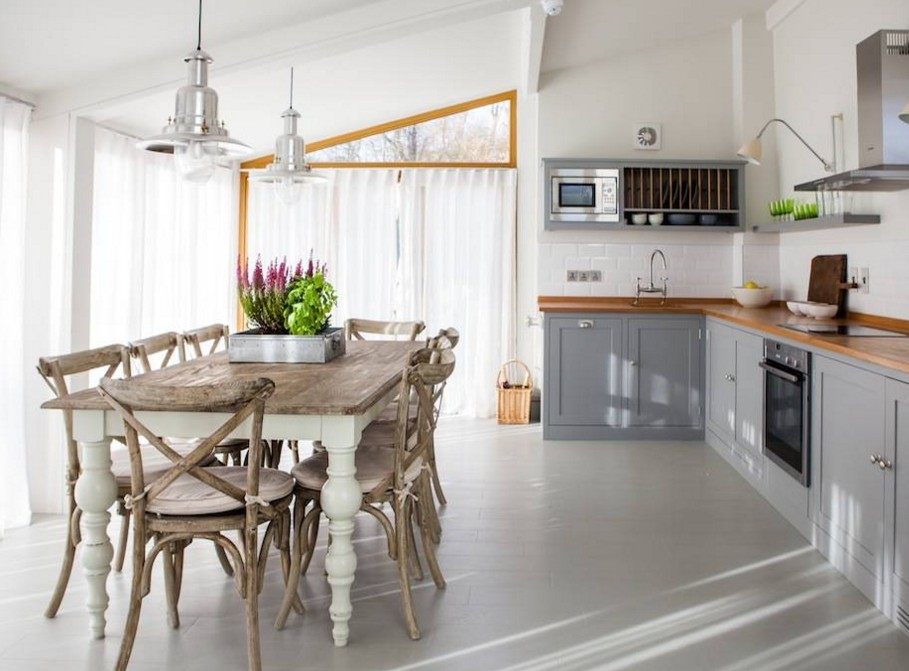 Les planchers de cuisine de style provençal peuvent être faits de planches ou de carreaux de céramique