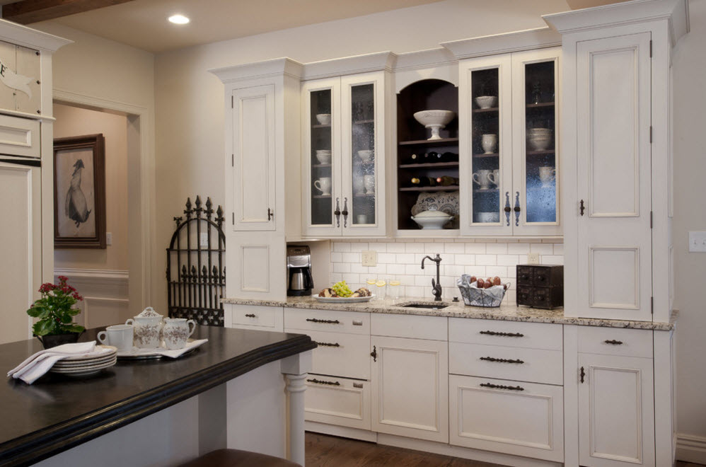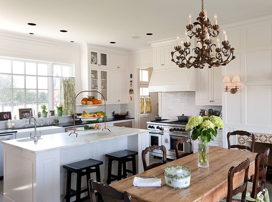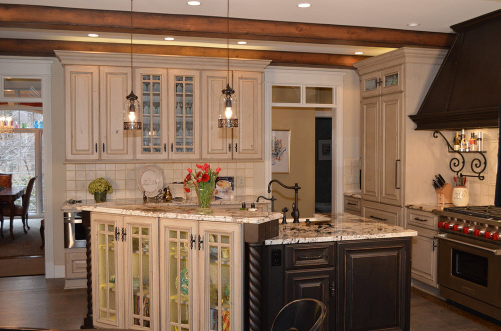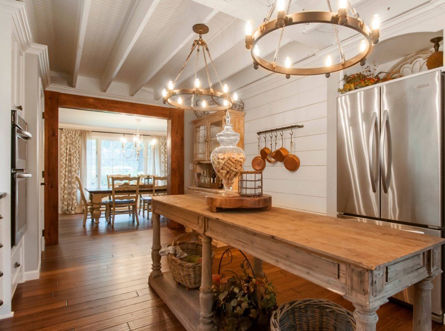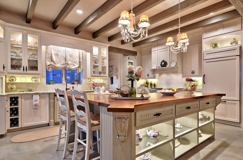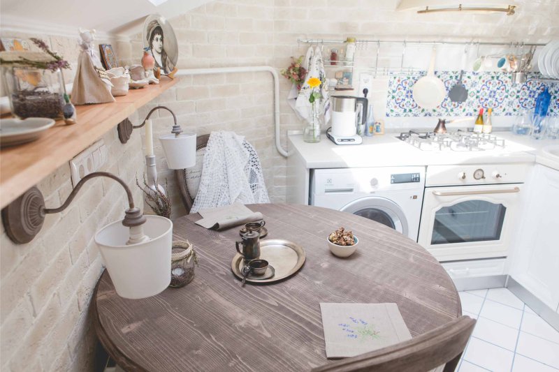 L'intérieur de la cuisine de style provençal complètera le plus harmonieusement les meubles avec des façades vieillies artificiellement