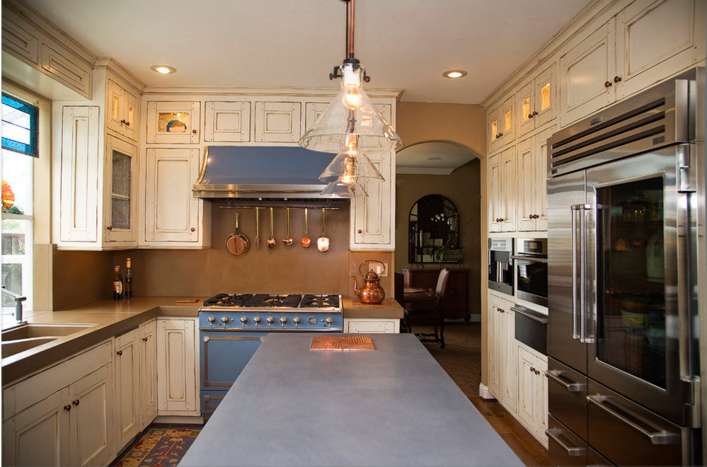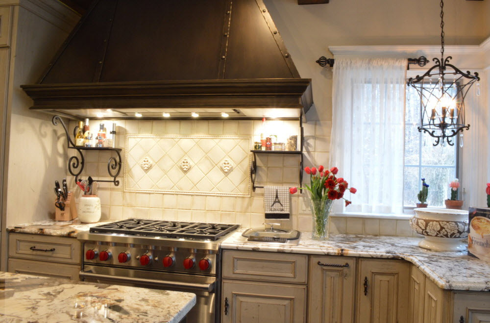En vente, vous trouverez facilement des poêles et fours dont le design sera en harmonie avec la Provence française. Mais il vaut mieux cacher le lave-vaisselle ou le lave-vaisselle derrière les façades des meubles