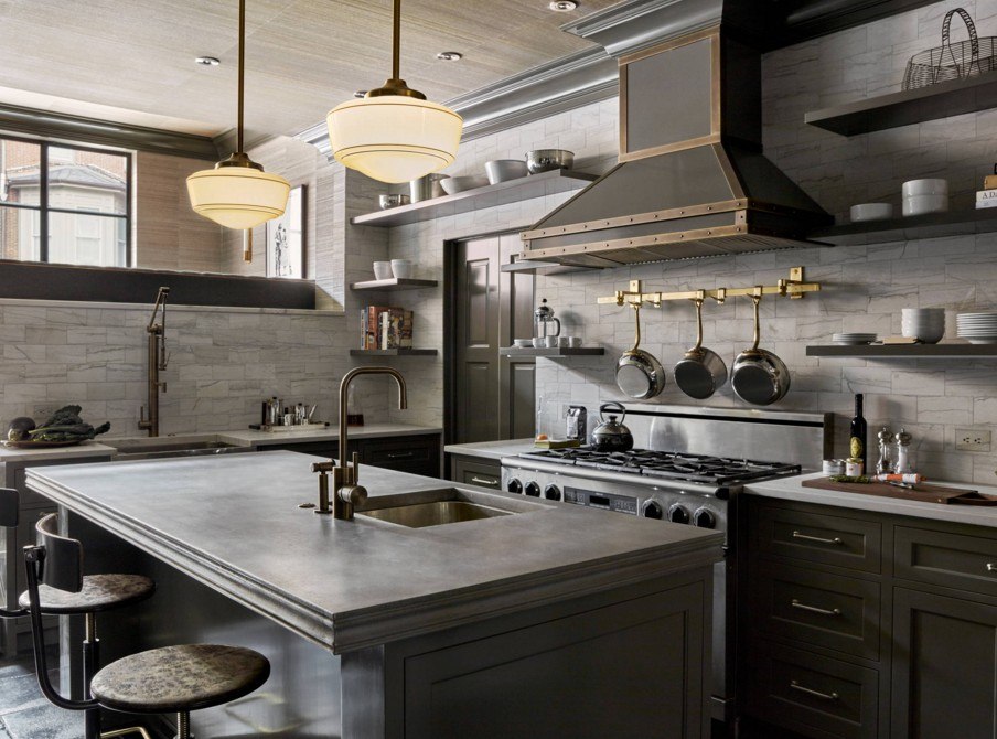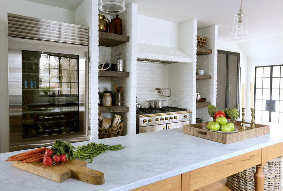 La maçonnerie peut également être une option organique. Pour une petite cuisine, il est préférable de ne recouvrir de briques légères qu'un seul mur, créant ainsi un certain zonage.