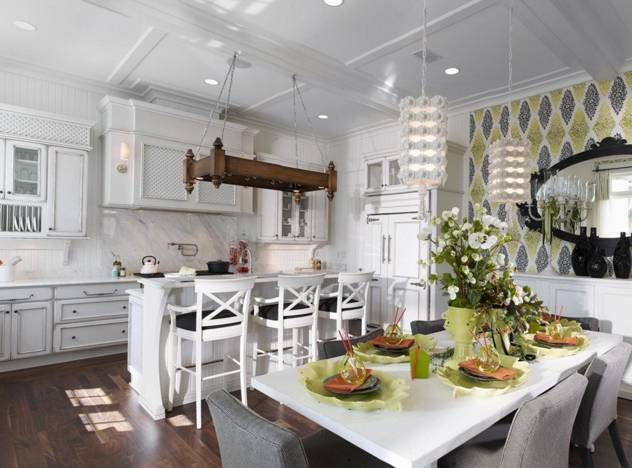 Si le choix s'est porté sur le papier peint, alors il vaut mieux privilégier les dessins classiques: ornements floraux, monogrammes, rayures, cages. N'oubliez pas que le papier peint en papier est une option inappropriée et peu pratique pour la cuisine.