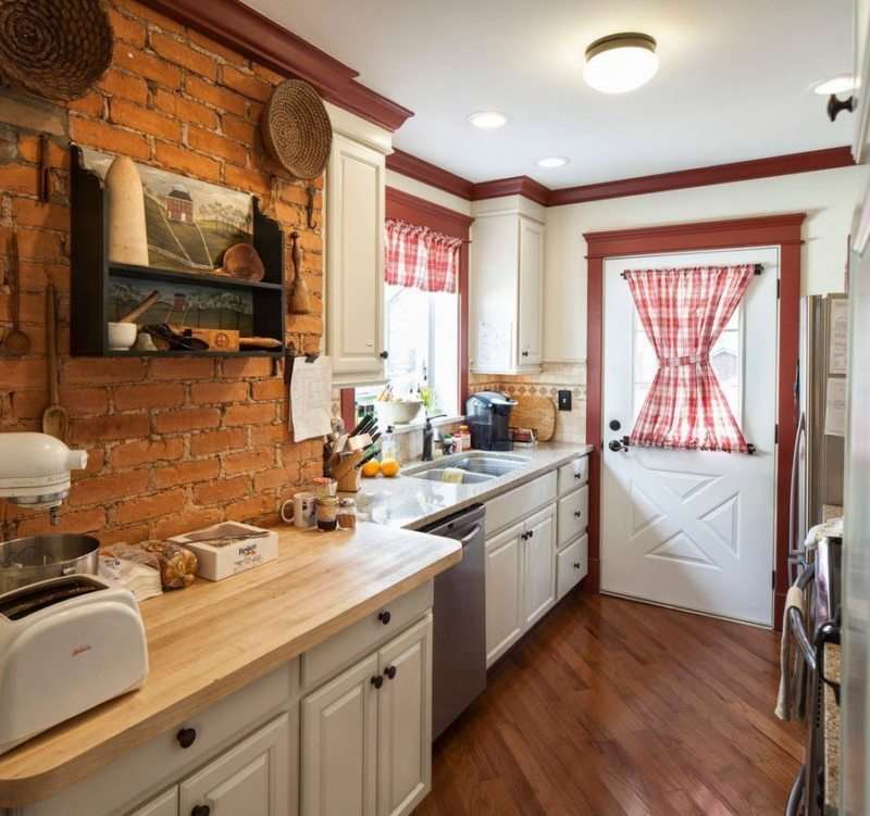 Ainsi, toutes les astuces, recommandations et astuces utiles ont été prises en compte. Il est temps de faire un choix spécifique pour votre propre cuisine intérieure étroite. Vous devriez commencer par la sélection des couleurs. Le meilleur choix est un fond clair, des détails riches. Pour la décoration murale, vous pouvez choisir des couleurs blanc, sable, beige.