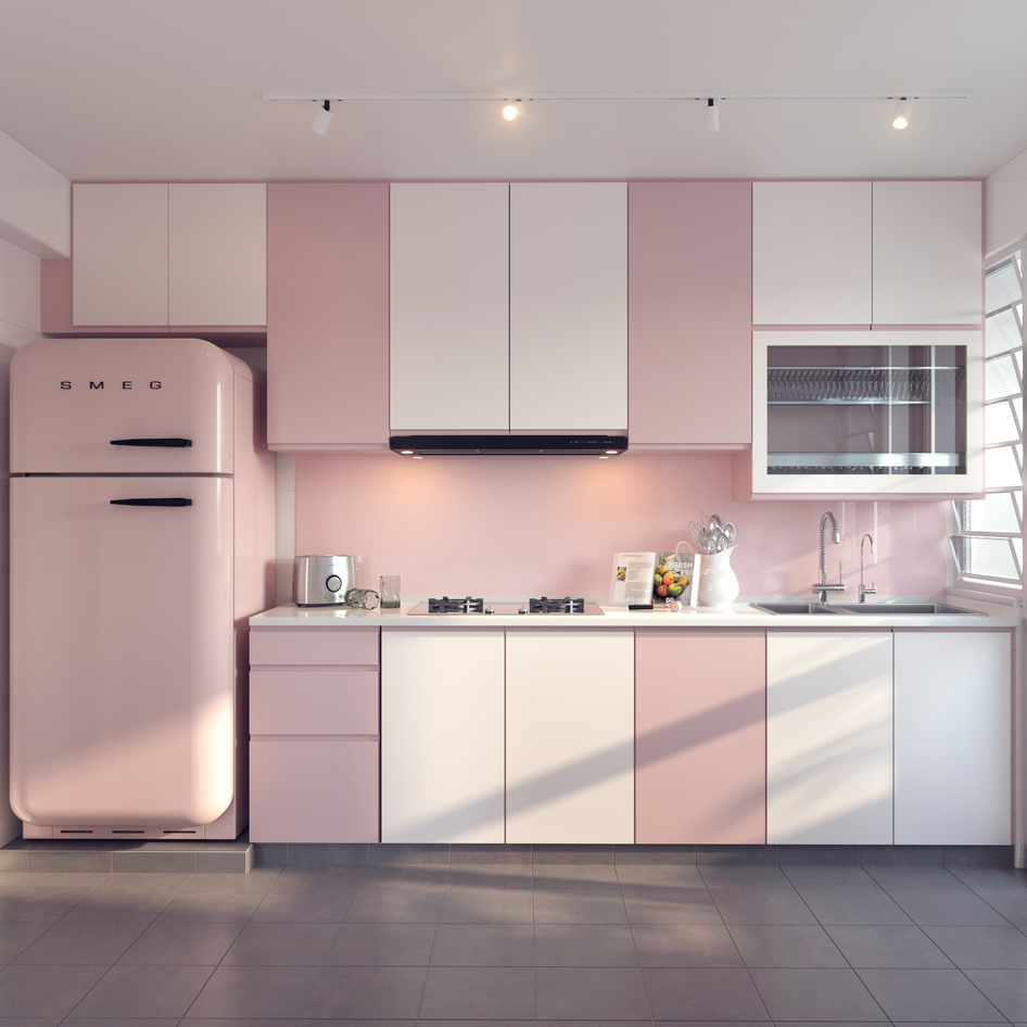 Une cuisine avec des détails roses semblera un peu plus grande, mais elle n'aura pas l'air massive