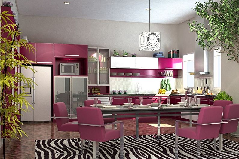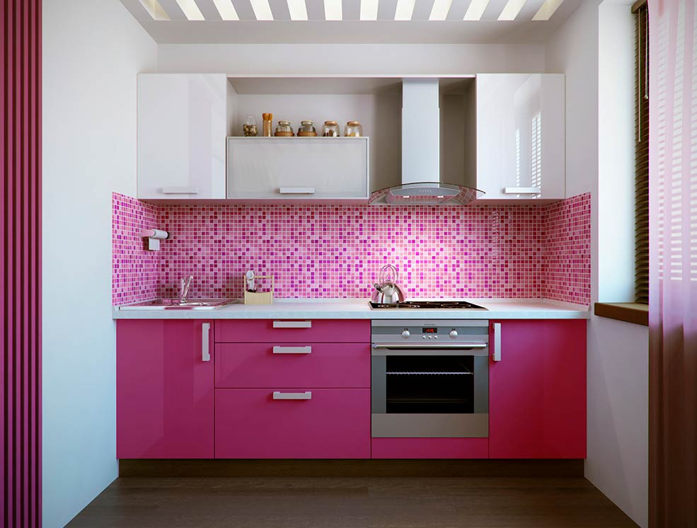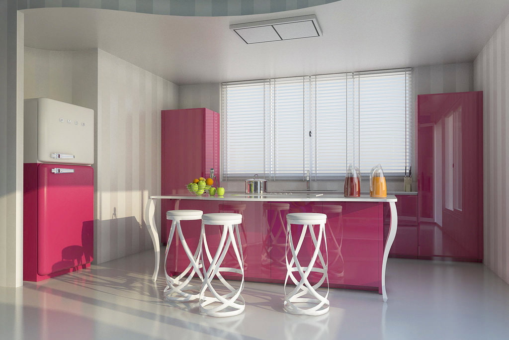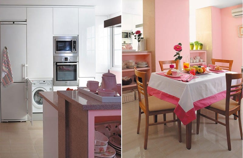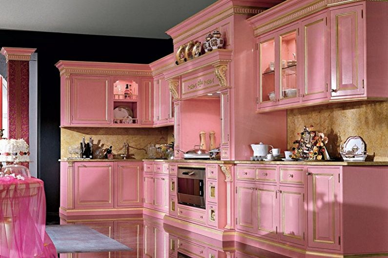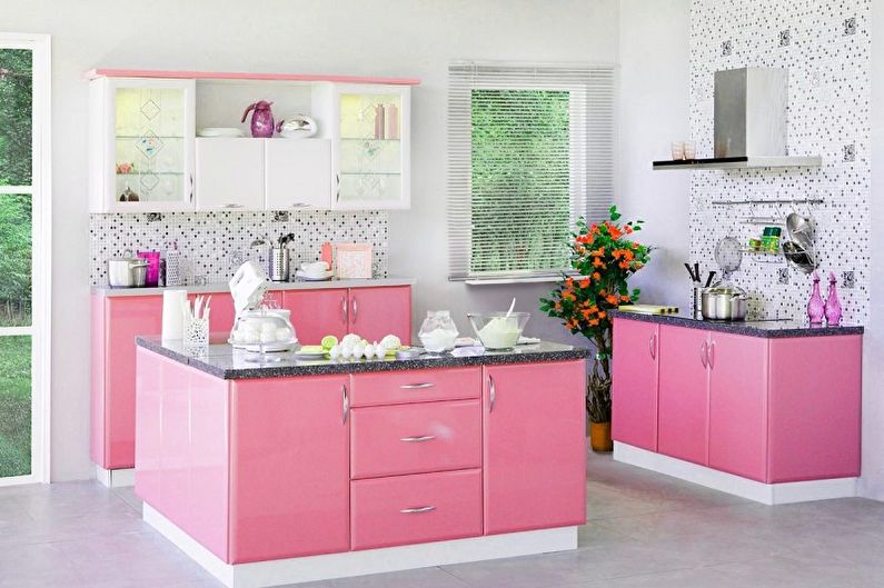Couleur rose à l'intérieur de la cuisine - avantages et inconvénients