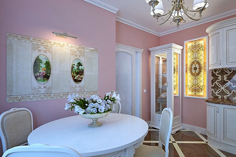 Murs roses dans la cuisine